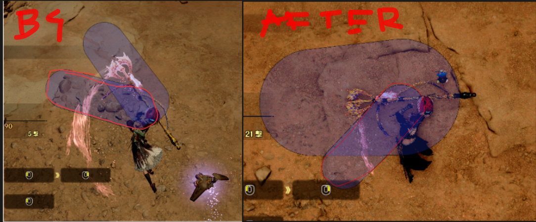 short active frame and no indicator , though to be fair offset is the least of IG problems in wilds. This is how they "fixed" it in the last patch (the red circle hitbox is the actual damage hitbox, the other hitbox is purely for offset detection)