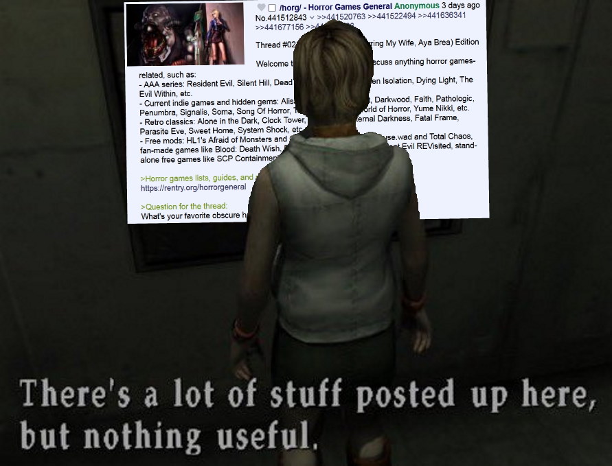 Welcome to /horg/, the place to discuss anything horror games-related, such as: