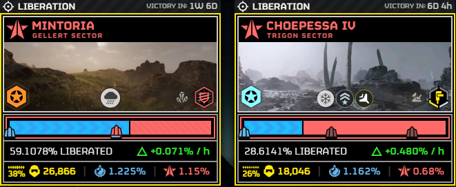 HELLDIVERS 2 is a 2024 squad-based crossplay PvE coop third-person shooter for PC, PS5, and Xbox Series X/S. 4 players fight against hordes of insectoid fungus-crabs, killbots, and squiggers to spread Managed Democracyβ’. Players wage war across a contested galaxy, deployed to procgen battlefields, and rush to do as much as possible behind enemy lines while constrained by a time limit, colleagues, and patience in the face of Swedecode. With Joel's blessing, a planet may be defended or liberated, and the player is based if they combine their efforts as much as possible to Liberateβ’ the galaxy.