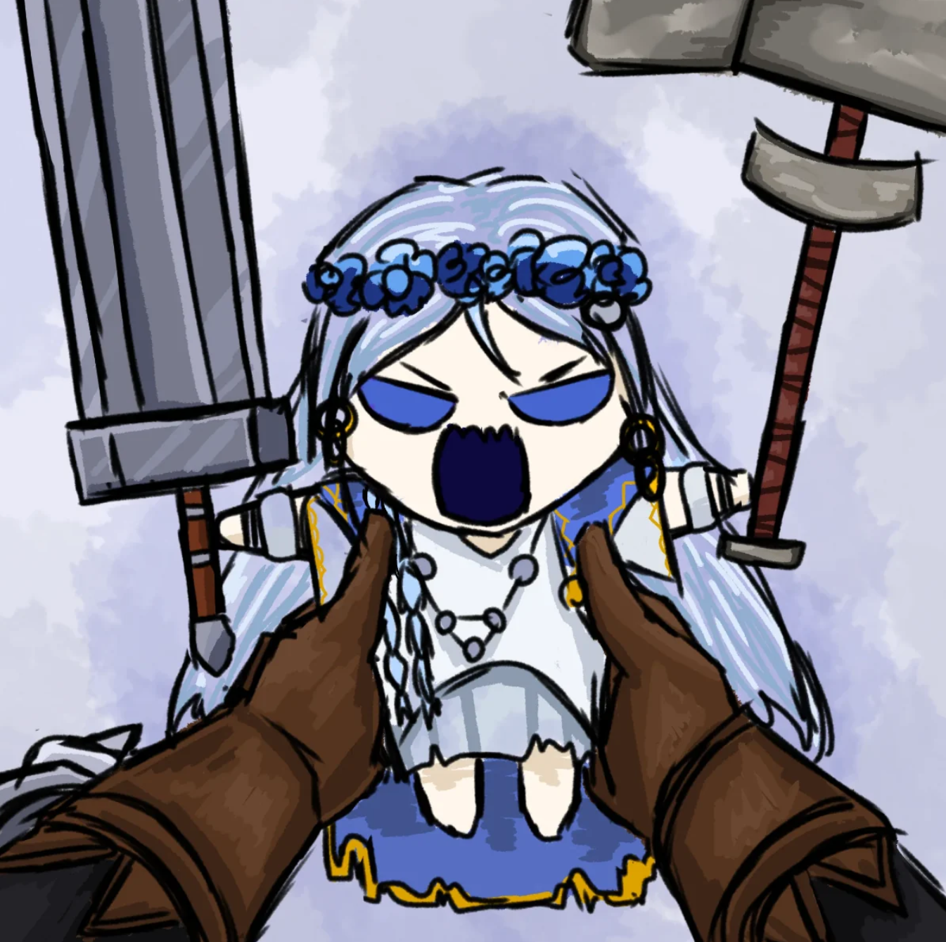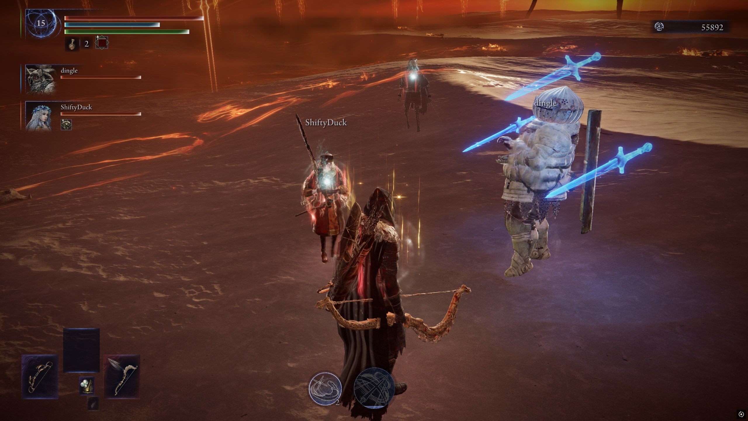 inventory full of holy buffs so my miquella's scythe was doing 1700dmg a ring