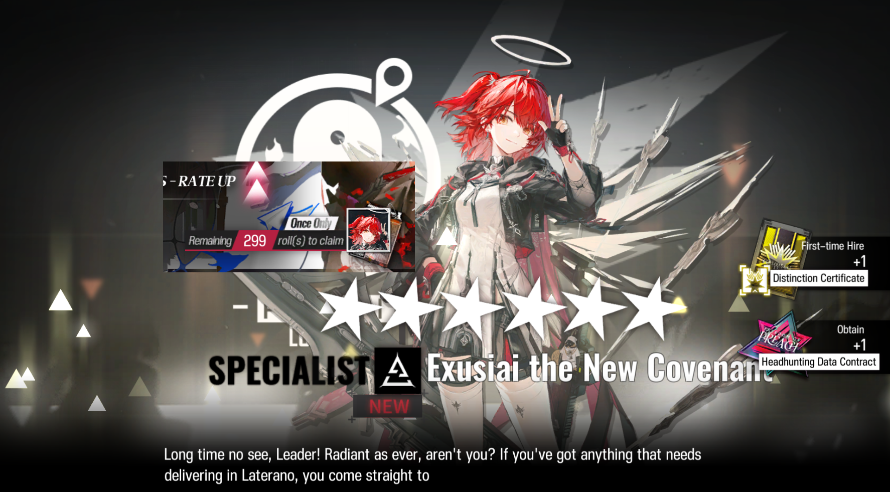 [10/14-10/28][Freedom of Preach]6* Specialist Exusiai the Covenant, 6* Sniper Lemuen, 5* Guard Gracebearer