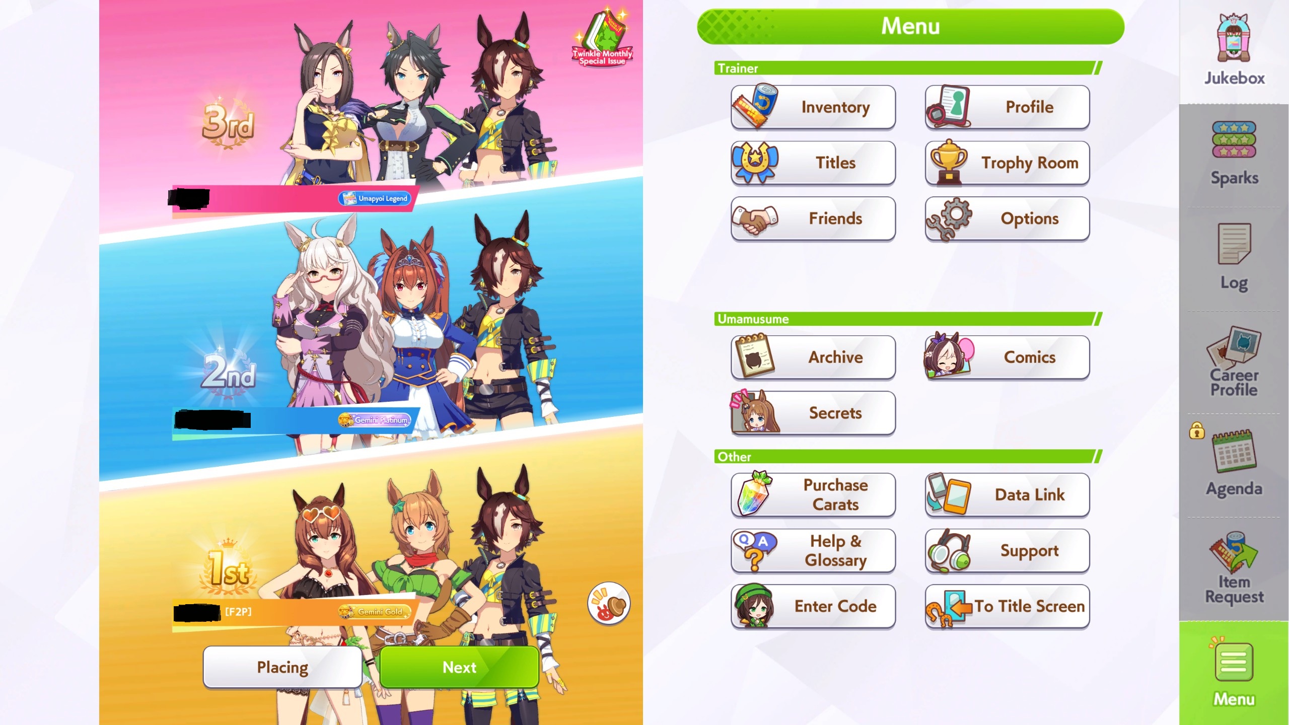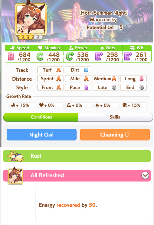 Current Rate Up: Summer Maruzensky (Alt 3*), Summer Special Week (Alt 3*), Sweep Tosho (SSR), Winning Ticket (SSR)