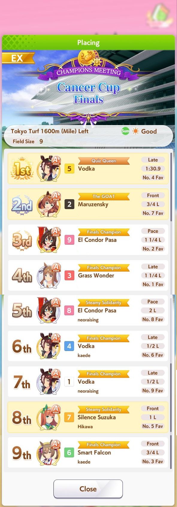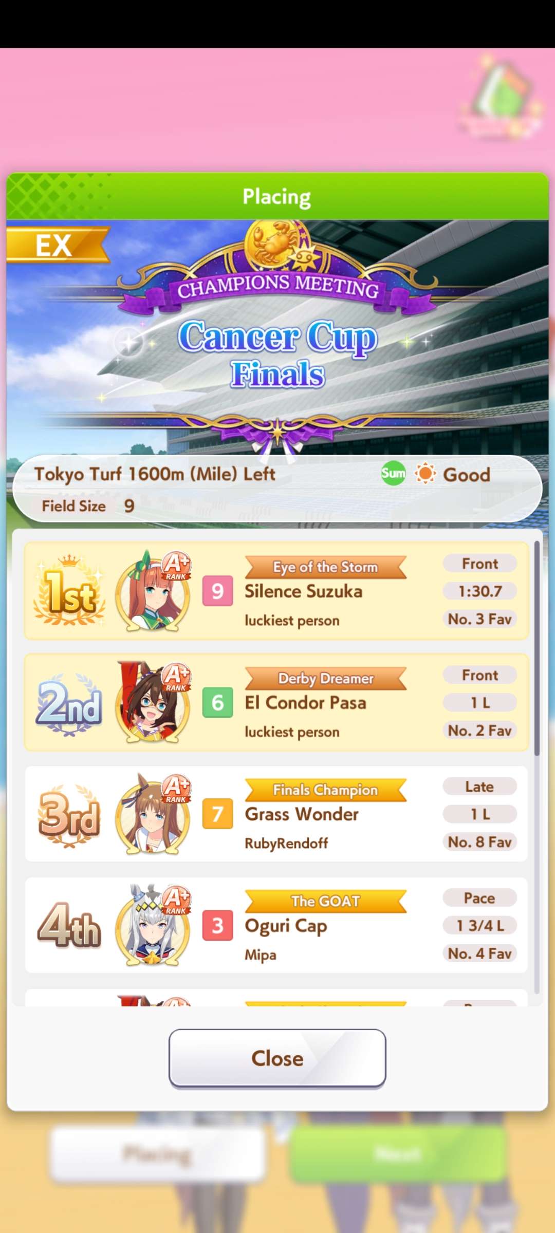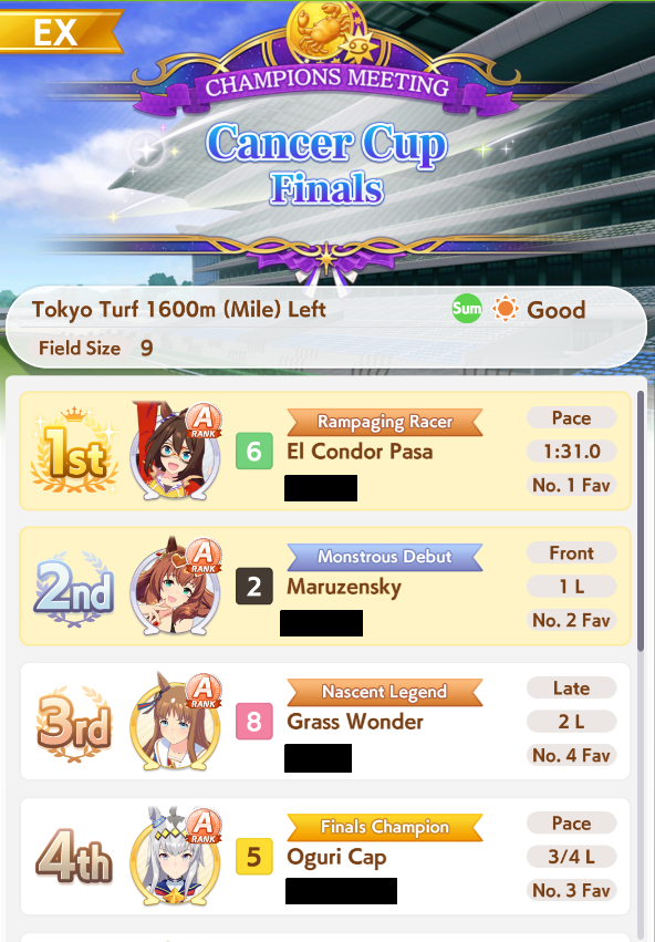 December: CM Mile (No debuffs) - Hanshin 1600m