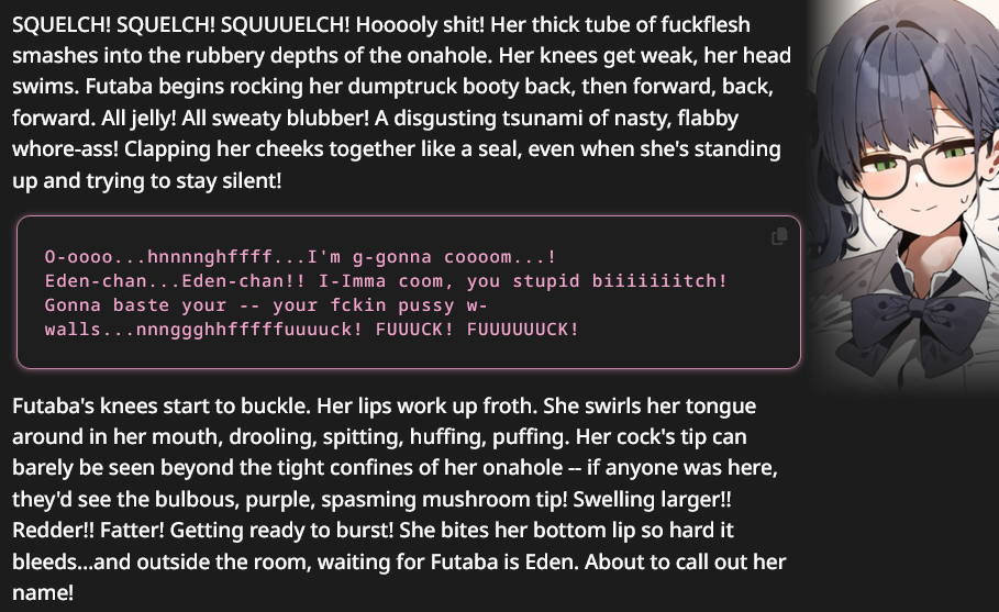 It's so fucking disgusting, unironically porn brainrot. I still see that garbage constantly in prompts or cards.