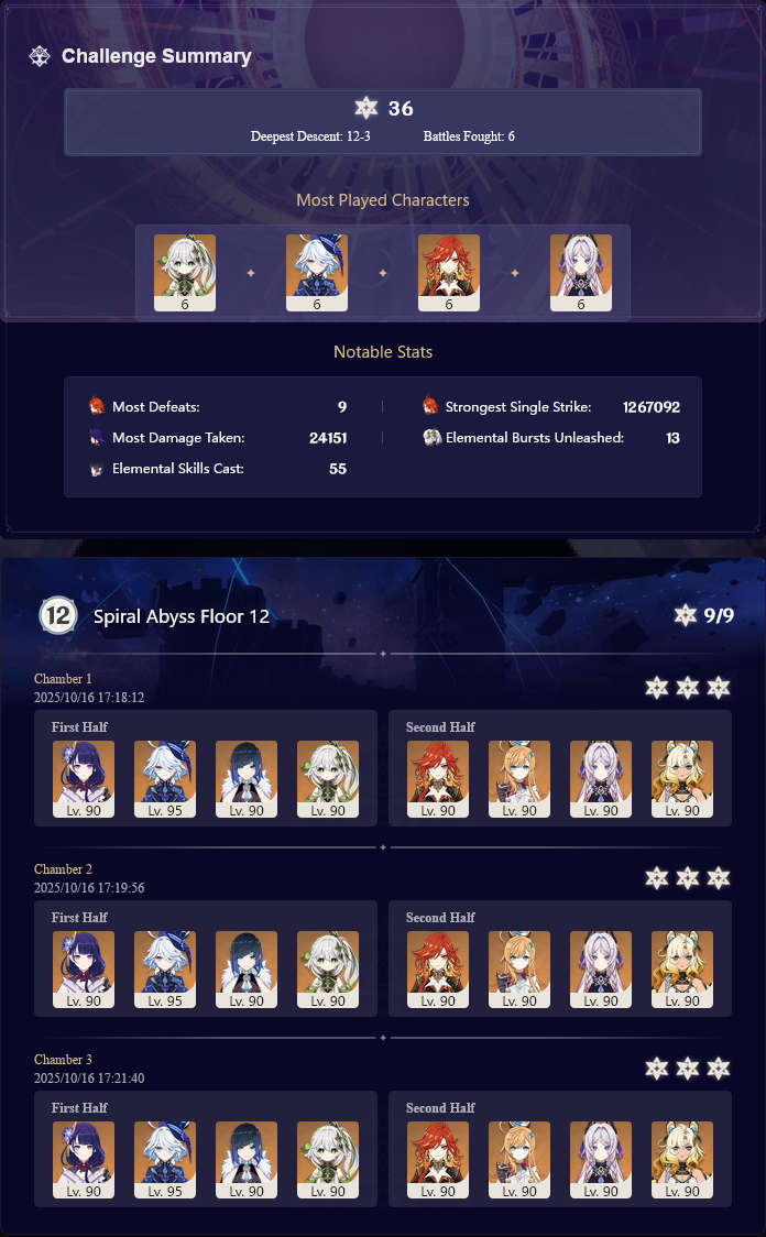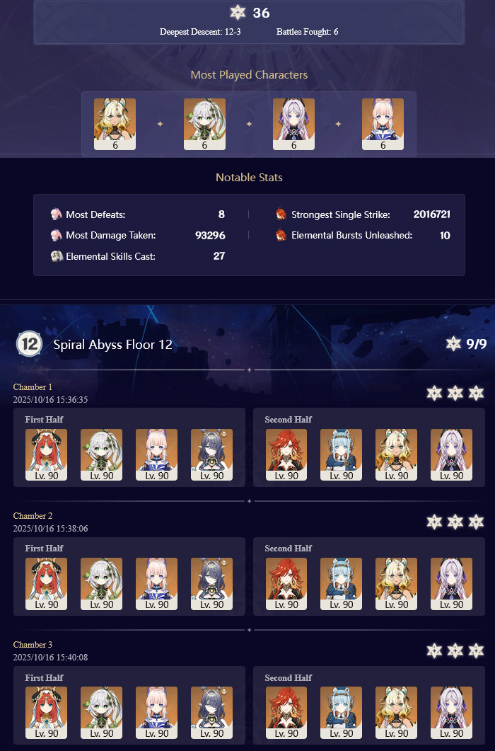 Luna I 2025-09-16 Spiral Abyss Statistics