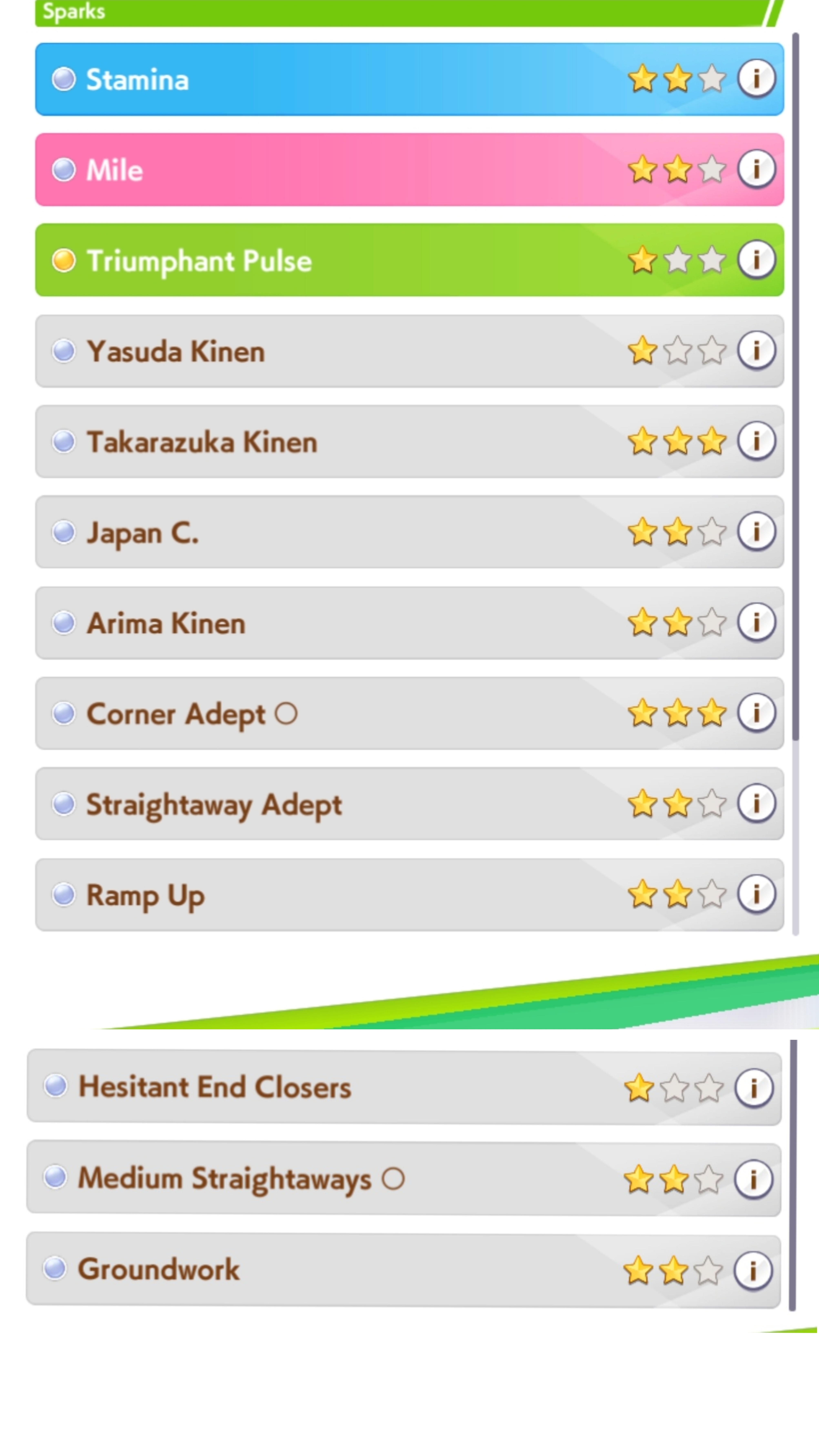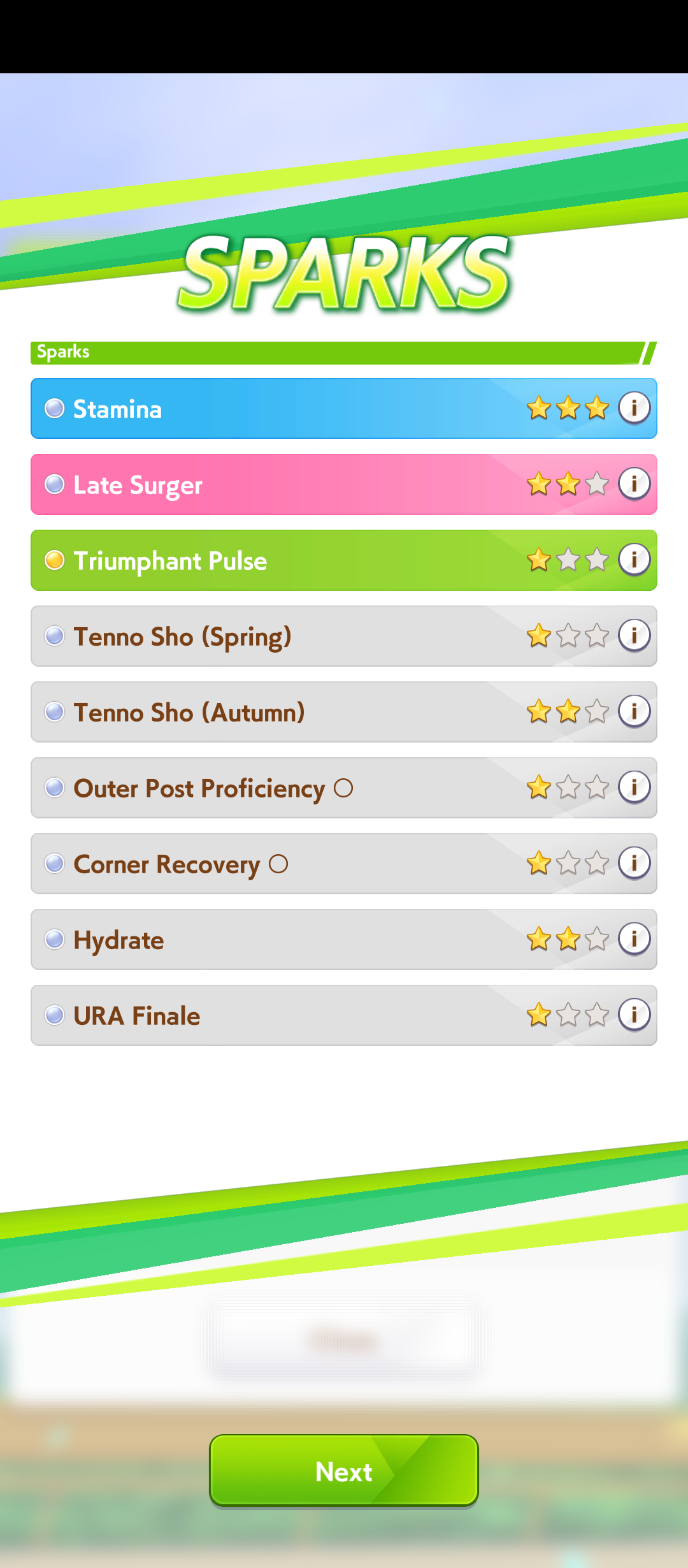 I'd say you need to run at least 6 to 9 power sparks and as much into stamina after that for a really good uma in the 800+ power range. If you're also playing pace chaser this CM then you can go even higher with power since you have access to two good gold skills for recovery and don't need the stamina sparks as much.