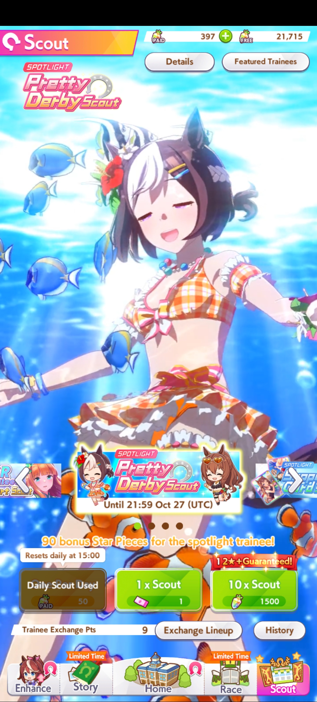 Current Rate Up: Summer Maruzensky (Alt 3*), Summer Special Week (Alt 3*), Sweep Tosho (SSR), Winning Ticket (SSR)