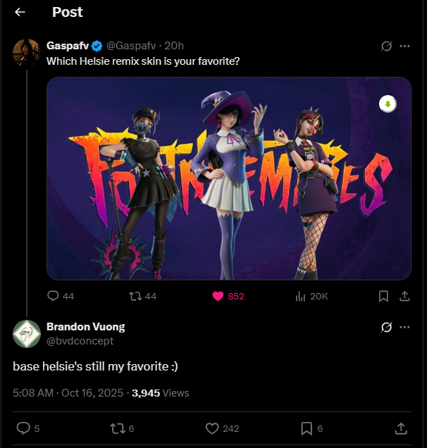 Since epic keeps in touch with Brandon and probably Drew as well is there any skins you hope gets new variants of?