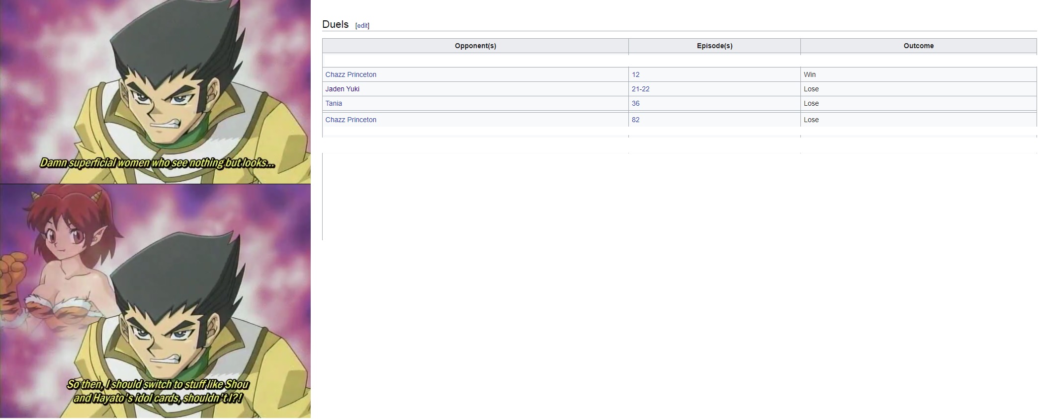 Raye is the hero of Yu-Gi-Oh and got a measly TWO episodes. You're lucky you got five. Or are you retarded and trying to cram a story that you say would take 16 episodes into 5 episodes?