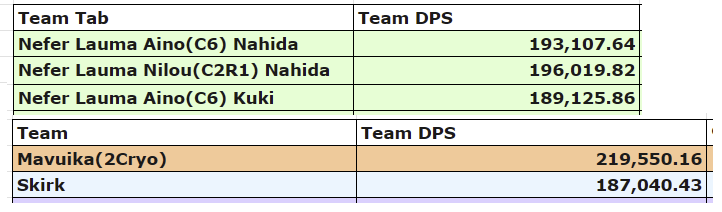 >C1R1 Lauma, C0 Aino, C0 Nahida