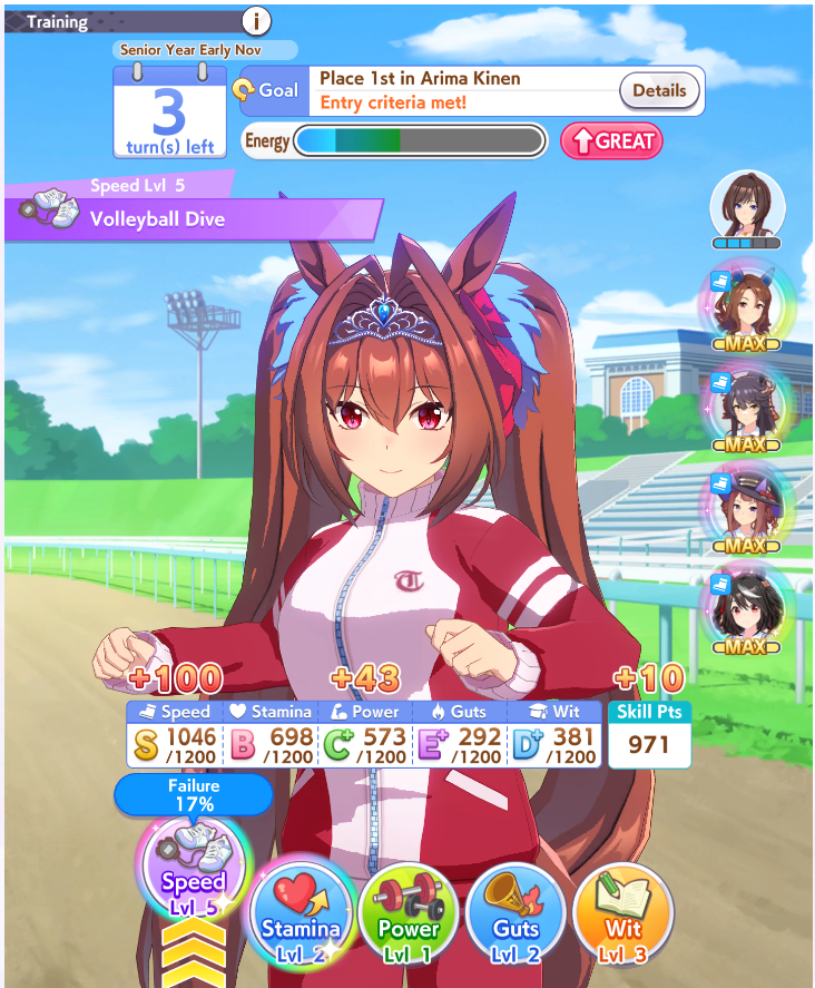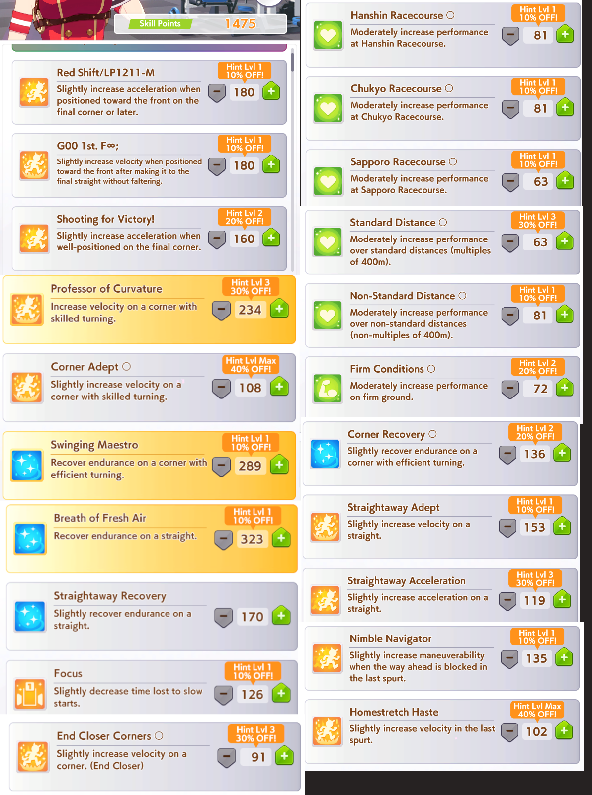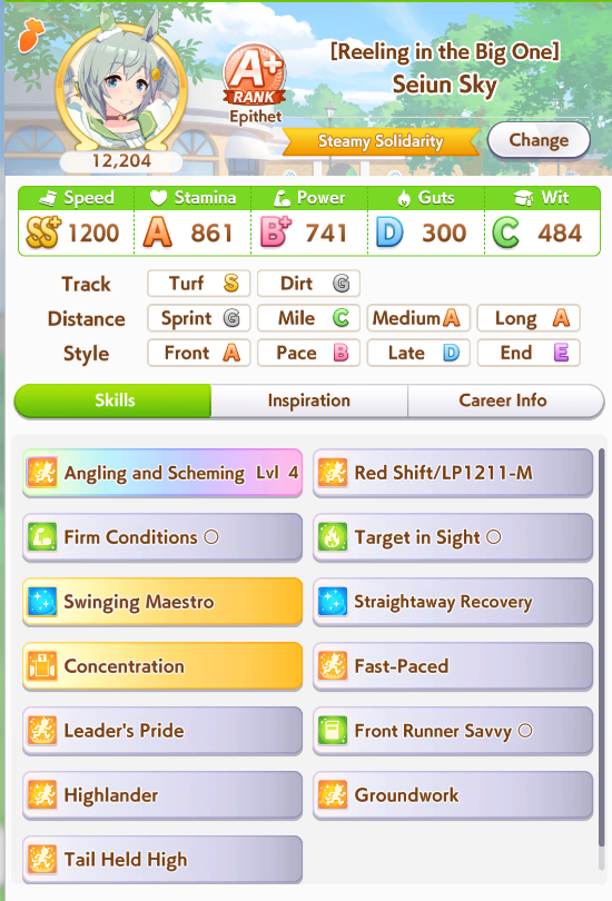 Building smaru is so much worse. You don't have a built in green skill like Seiun, you have shit affinity to 90% of the cast of the game for inheriting groundwork/greens and on CM4 in particular you're losing most lobbies to pace or Golshi without med S and red shift on top of that.