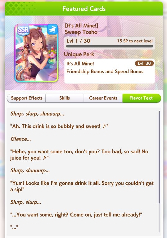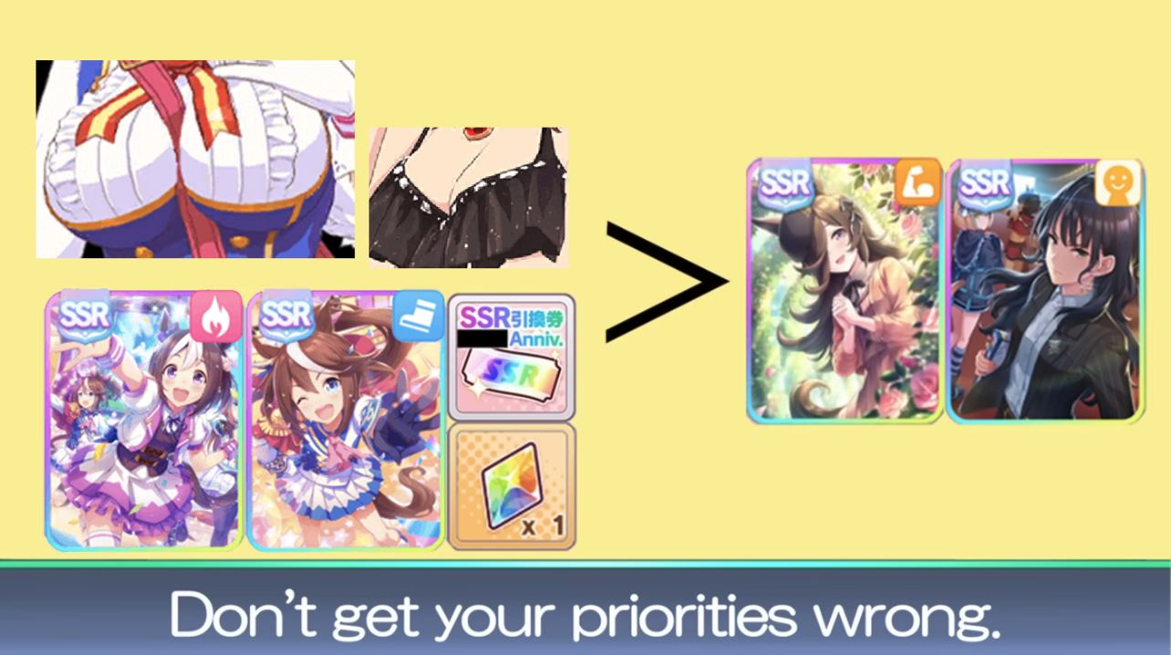 every time I am tempted to just roll on an uma banner "because surely this time it will be different" I will remember you, anon. That is most unfortunate, extremely non first-rate rng