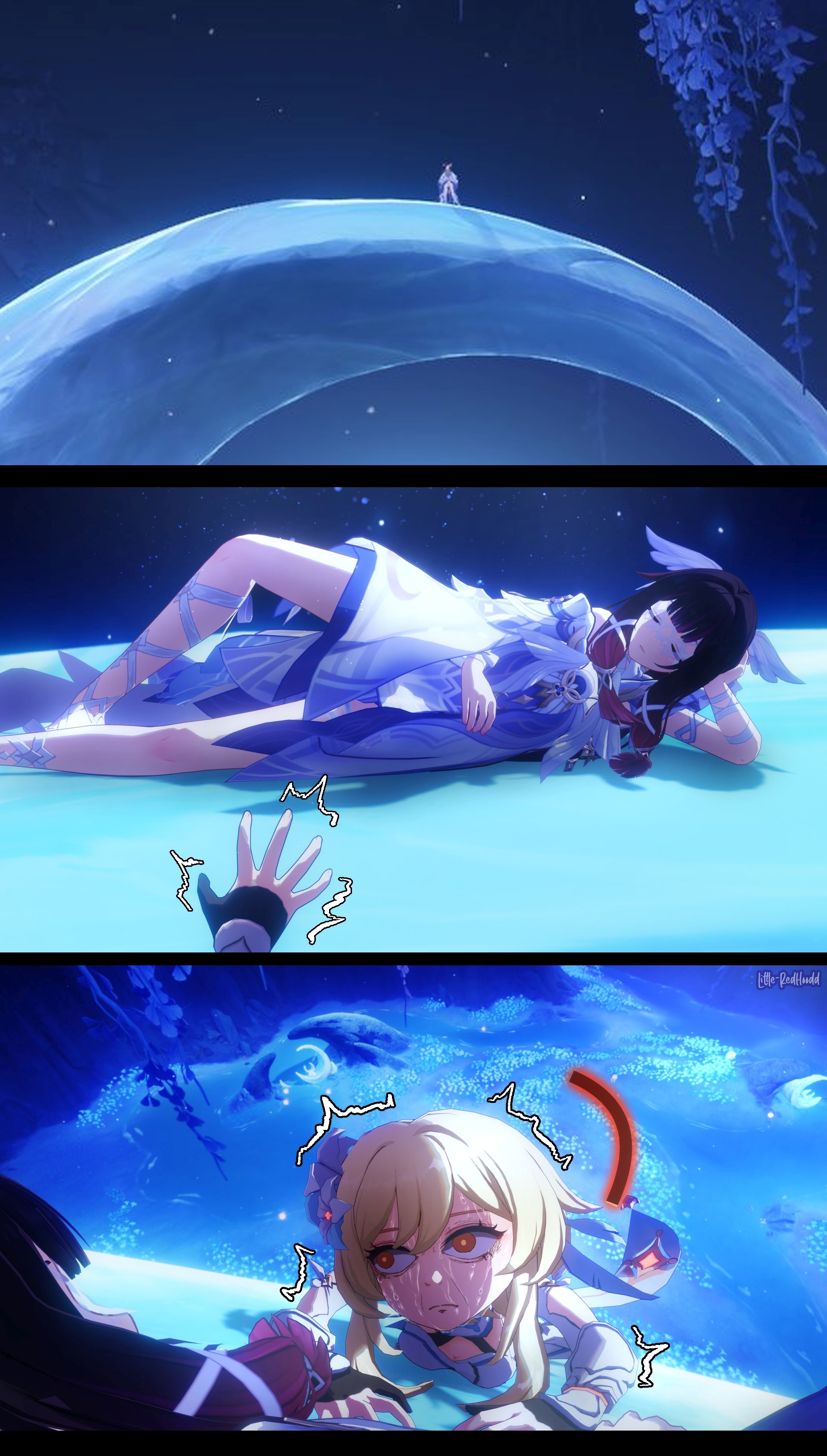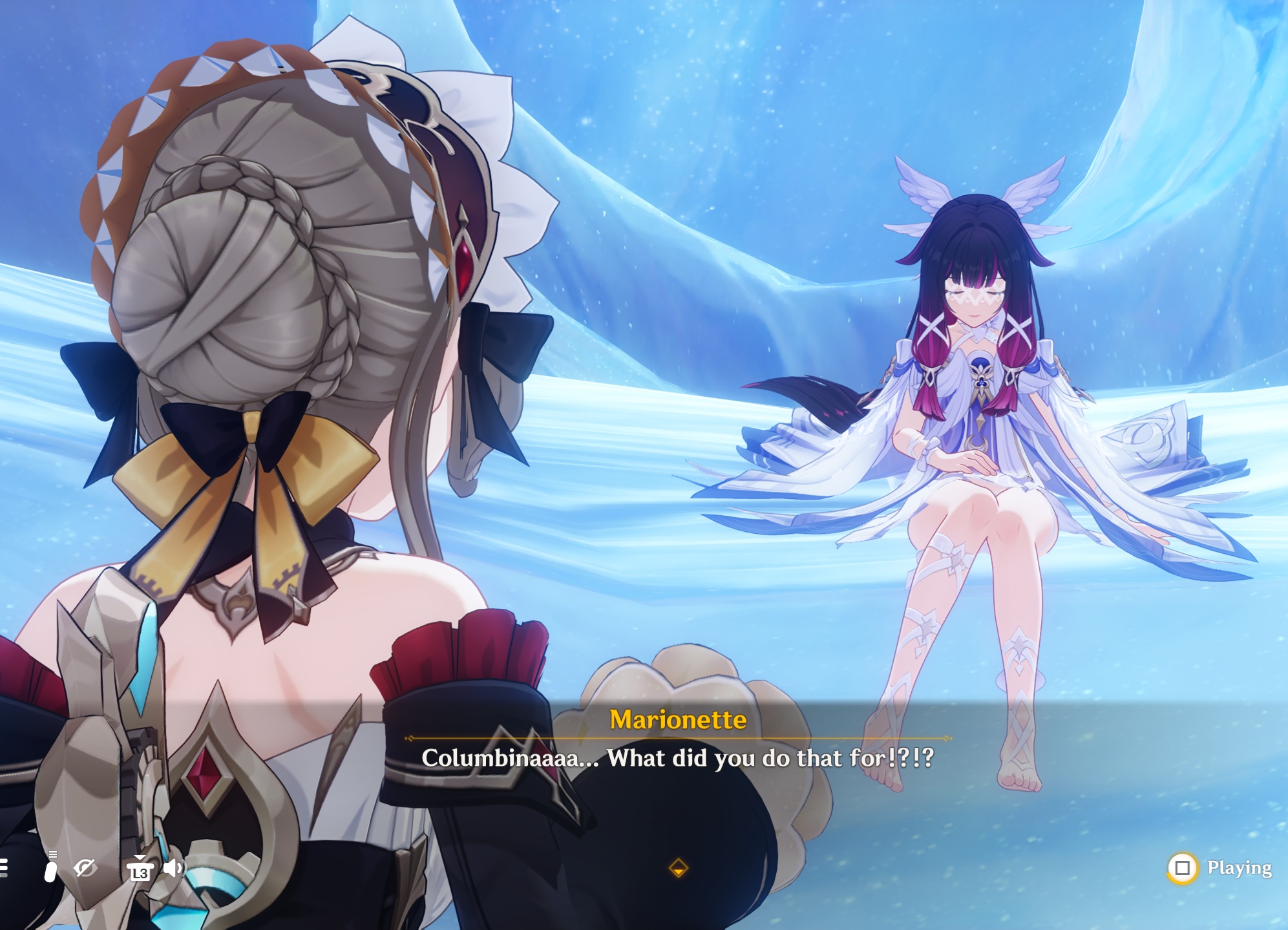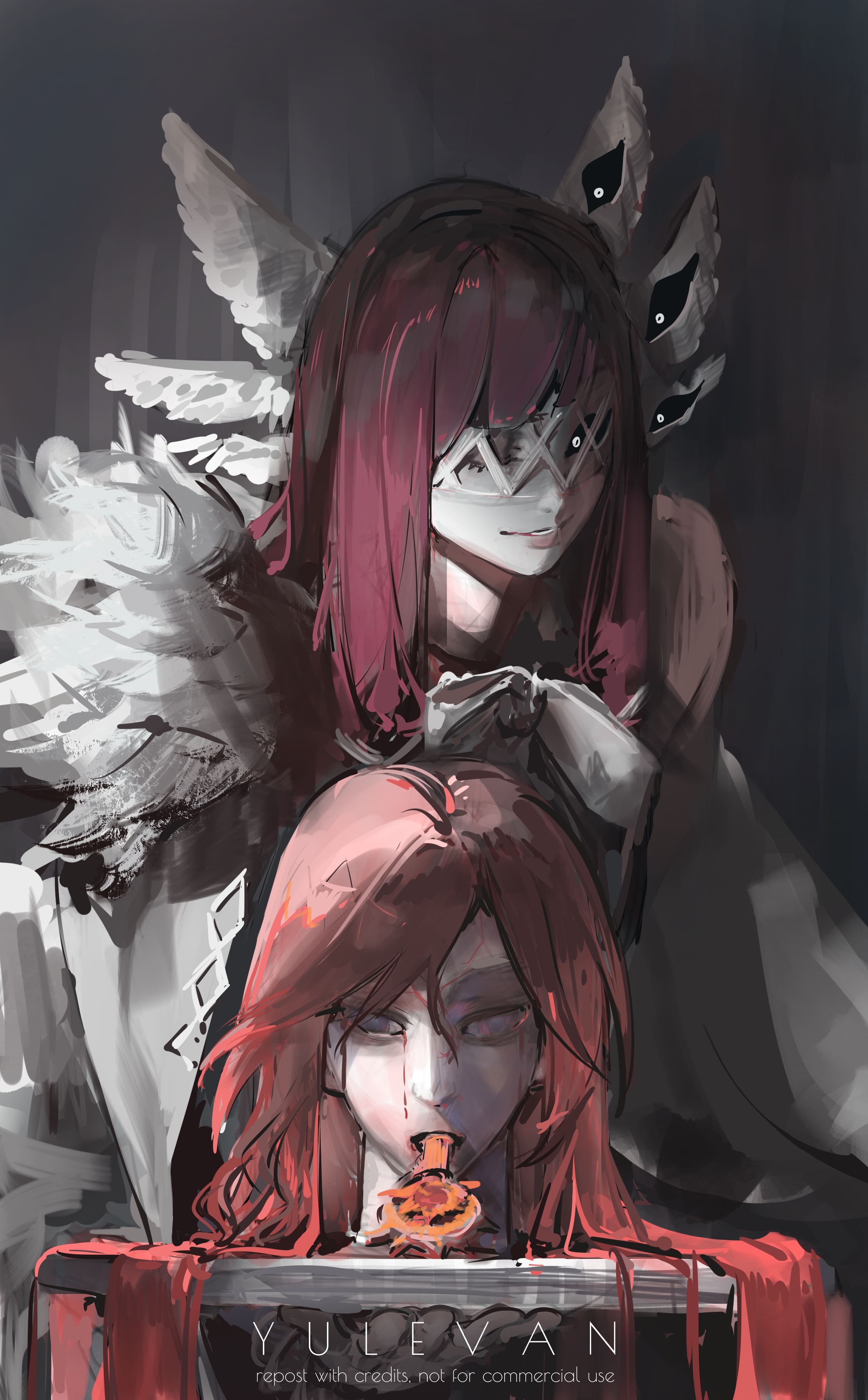 back in the hay day we used to get this kind of fanart for columbina where fans are depicting her as sadistic angel, mysterious being, horror eldritch monster because this one character used to be the most mysterious genshin harbinger that practically never exist in the game for 3 years straight since her first on-screen appearance on winter night lazzo video.