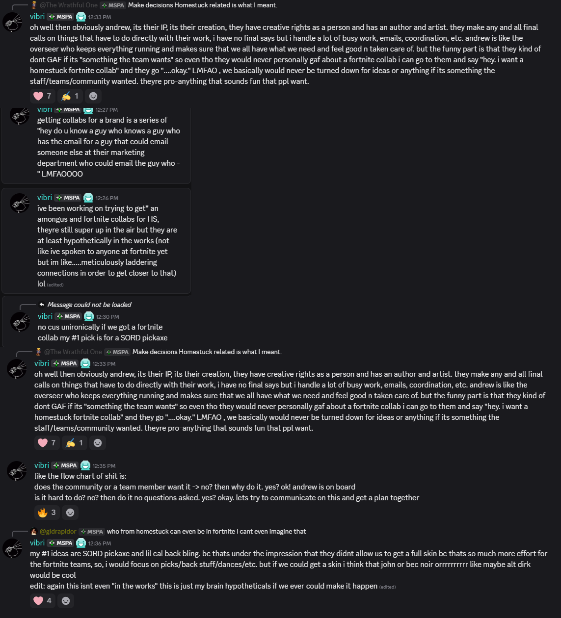 The current owner of the official homestuck discord (they also have contact with andrew hussie) has expressed they have been trying to get a fortnite or among us homestuck collab