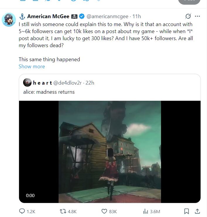 That's easy: I don't use Twitter and I only knew his Alice games at the time of Asylum as "the creepy Alice in Wonderland game I am not allowed to play with on the family computer".