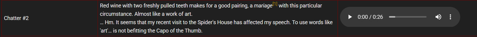 Reminder all the Bloodfiends from La Manchaland were Dulcinea's descendants. This means Nicolina and Curiambro were either the great grandparents or aunt/uncle to Casseti and watched as their mother paraded around with him in front of the rest of the family.