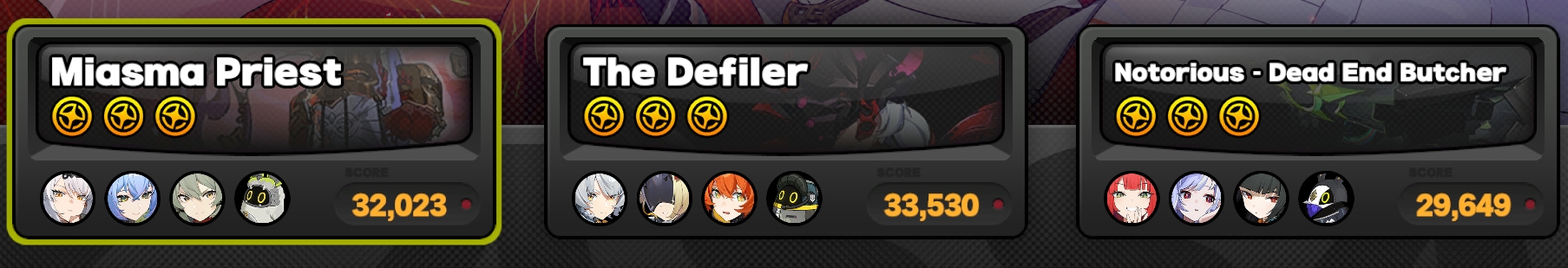 Try switching your yixuan and evelyn teams, I think she fares well against priest more than defiler