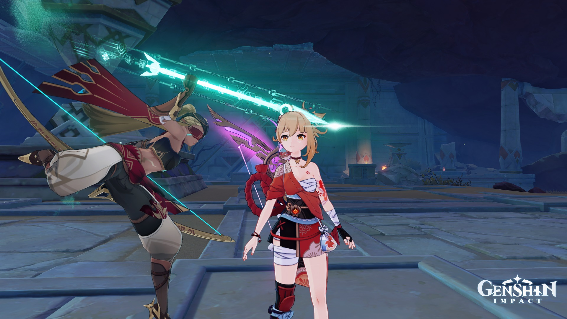 >Current weapon banner: Blood-Soaked Ruins (Polearm), Aqua Simulacra (Bow)