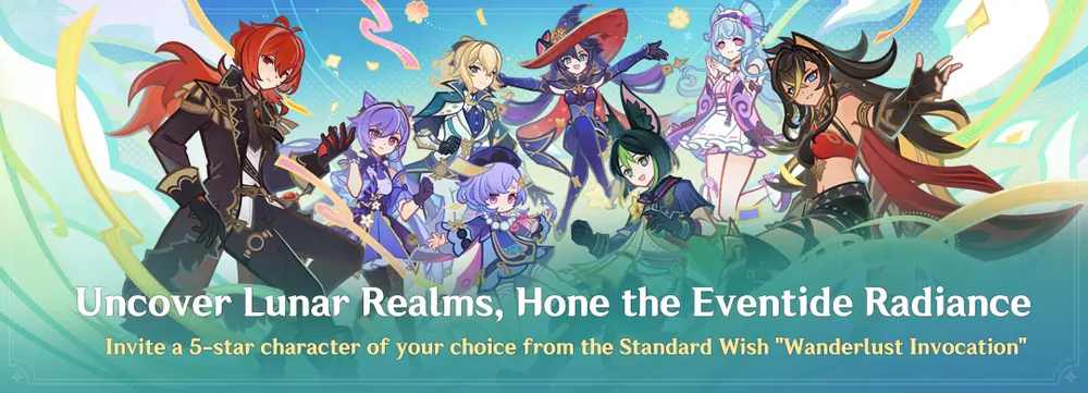>Current character banner: Flins, Yelan, Aino, Sucrose, Dori