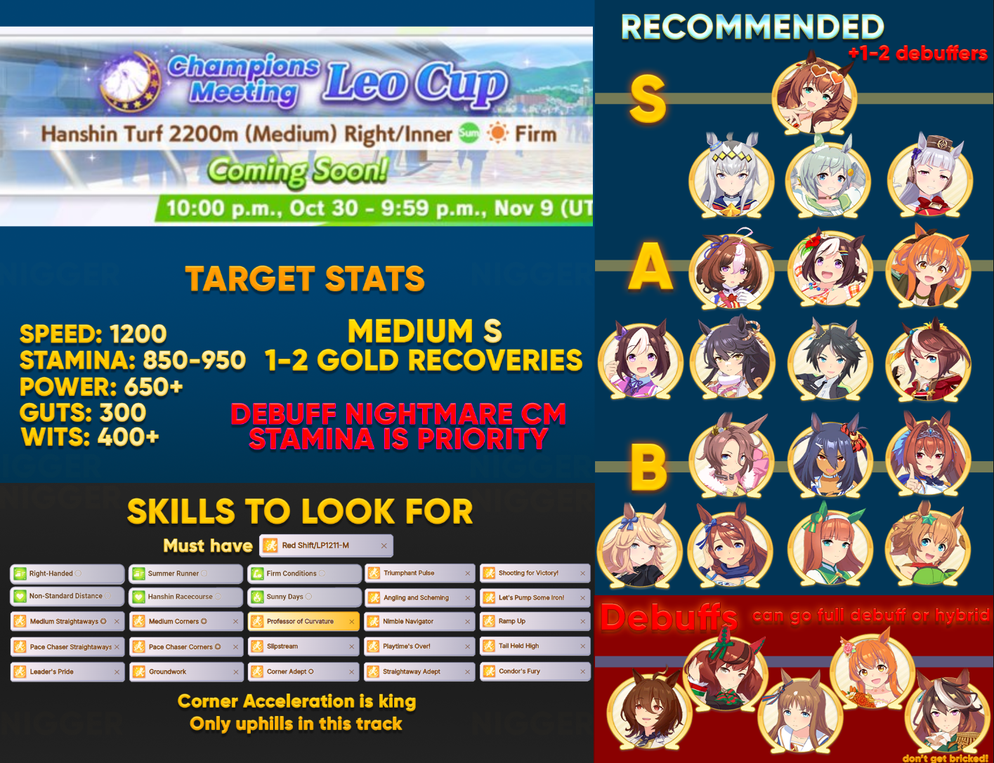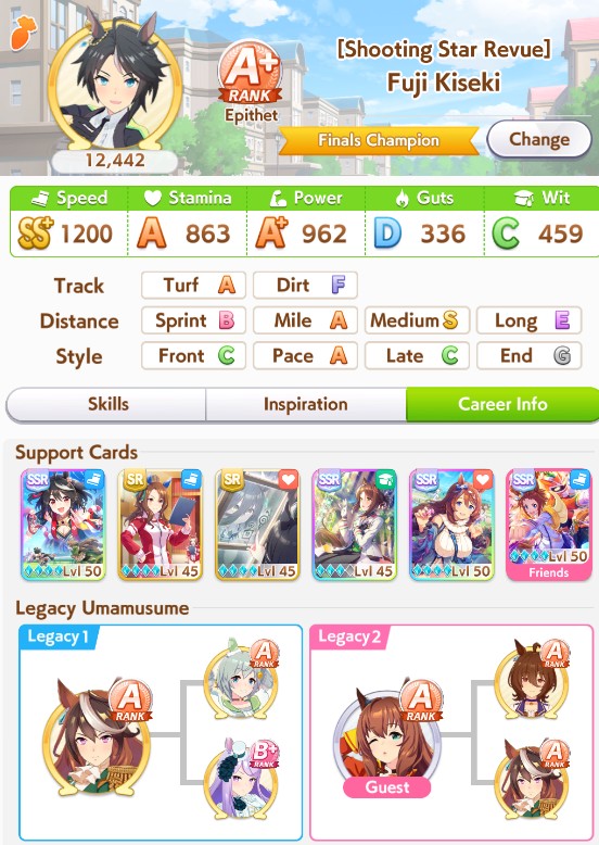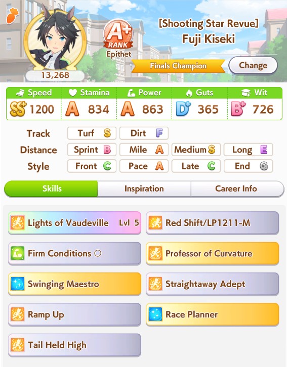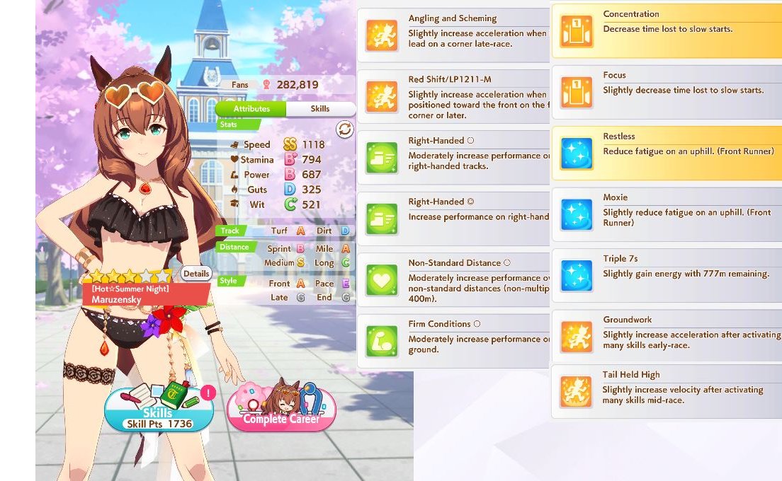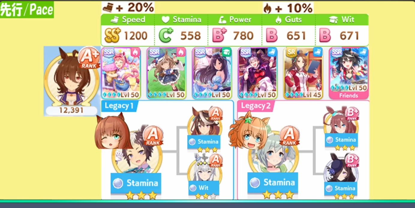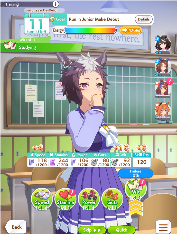 What do you do for TT frontrunners? Savvy+Concentration, then try to take both standard and nonstandard, firm + wet, sunny +cloudy?