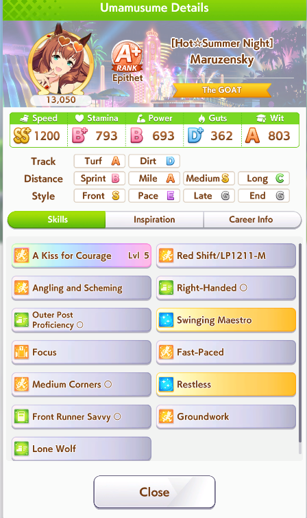 Current Rate Up: Summer Maruzensky (Alt 3*), Summer Special Week (Alt 3*), Sweep Tosho (SSR), Winning Ticket (SSR)