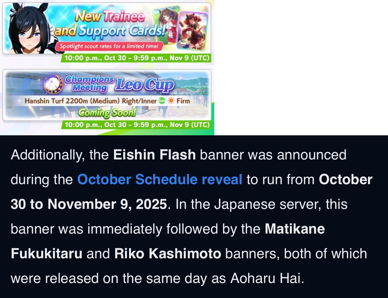 10/30 - Eishin Flash (3*), Nice Nature (SSR), Tosen Jordan (SR)