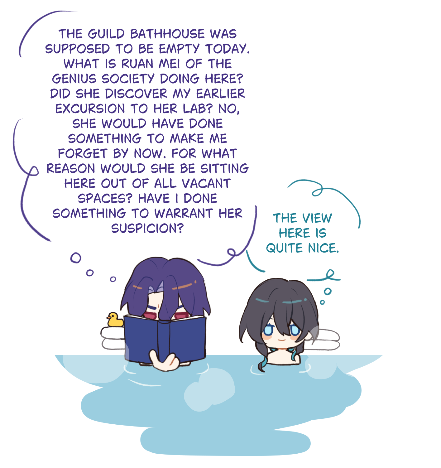 After reading the poetic rendition of TB monologuing a dialogue with a memory of Hyacine in fallen Okhema I like to think the silly events like Dromy's are TB in cope mode