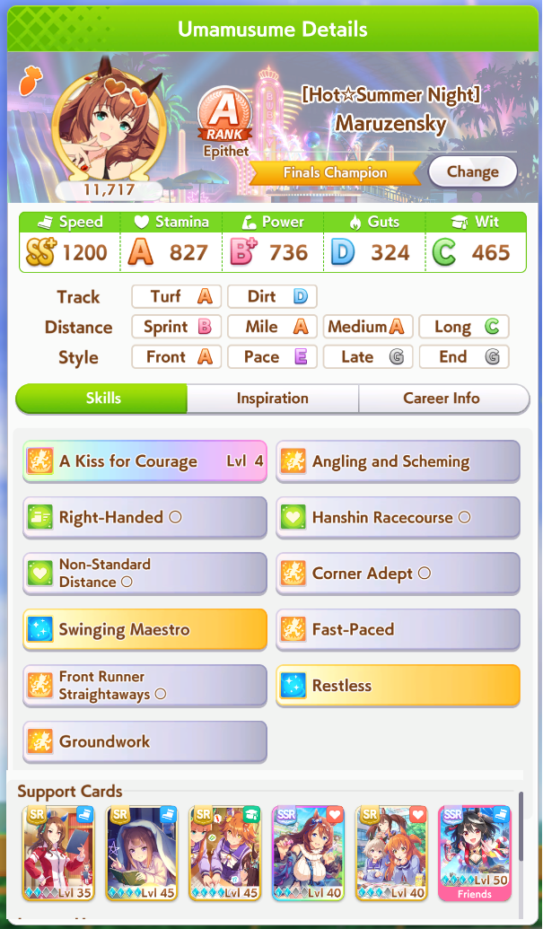 If you're a big enough schmuck to roll for meta umas to make your life easier, you needed to wait for V.Bourbon. S.Maru requires Front Runner autism and Xmas Cap requires a unique way of building. V.Bourbon is retarded baby moo easy mode: a strong unique and 3/4ts of Groundwork Autism done for you.