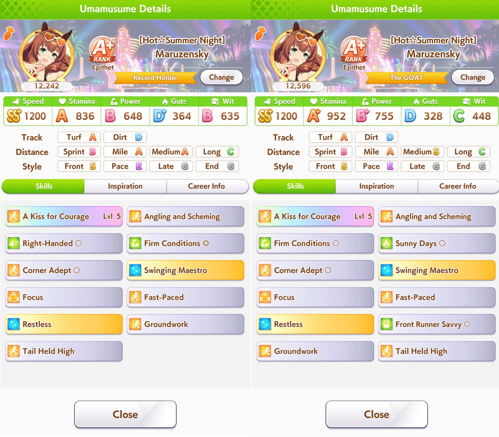 Current Rate Up: Summer Maruzensky (Alt 3*), Summer Special Week (Alt 3*), Sweep Tosho (SSR), Winning Ticket (SSR)
