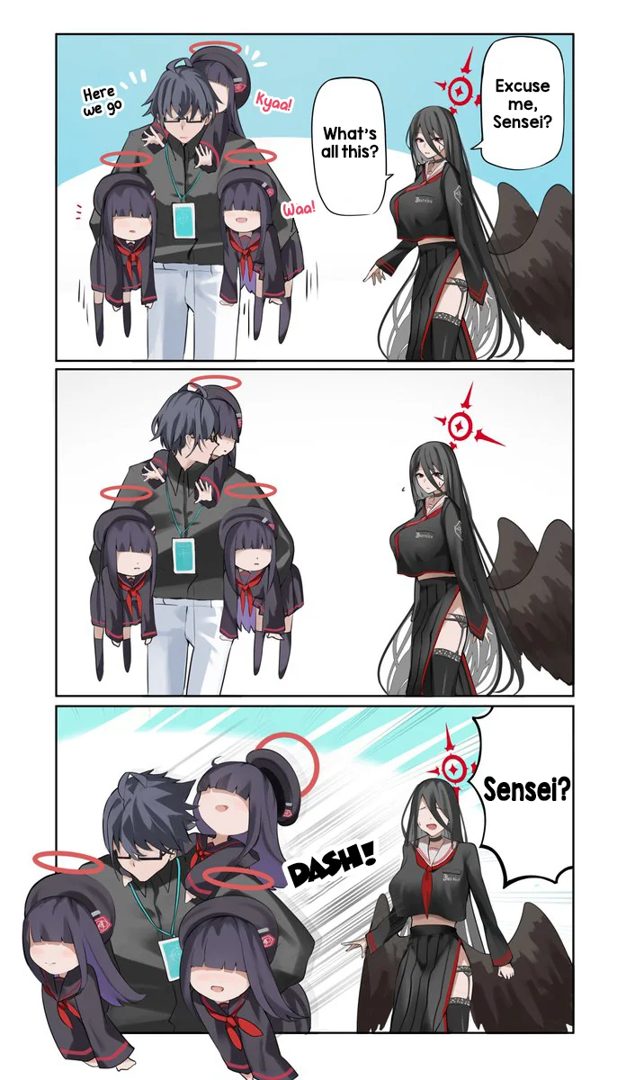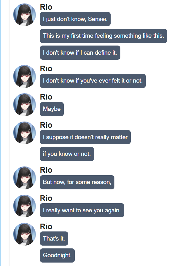 But, the next day, when she recounts the previous day's confessions to her sensei, he only looks at her with a perplexed expression. After some investigation, she finds out that the sensei she called is not the same sensei she fell in love with. In fact, he doesn't exist in this universe at all. He is the sensei's alternate universe counterpart, who has fallen in love with the MC's own AU self, who too is blissfully unaware of his crush.