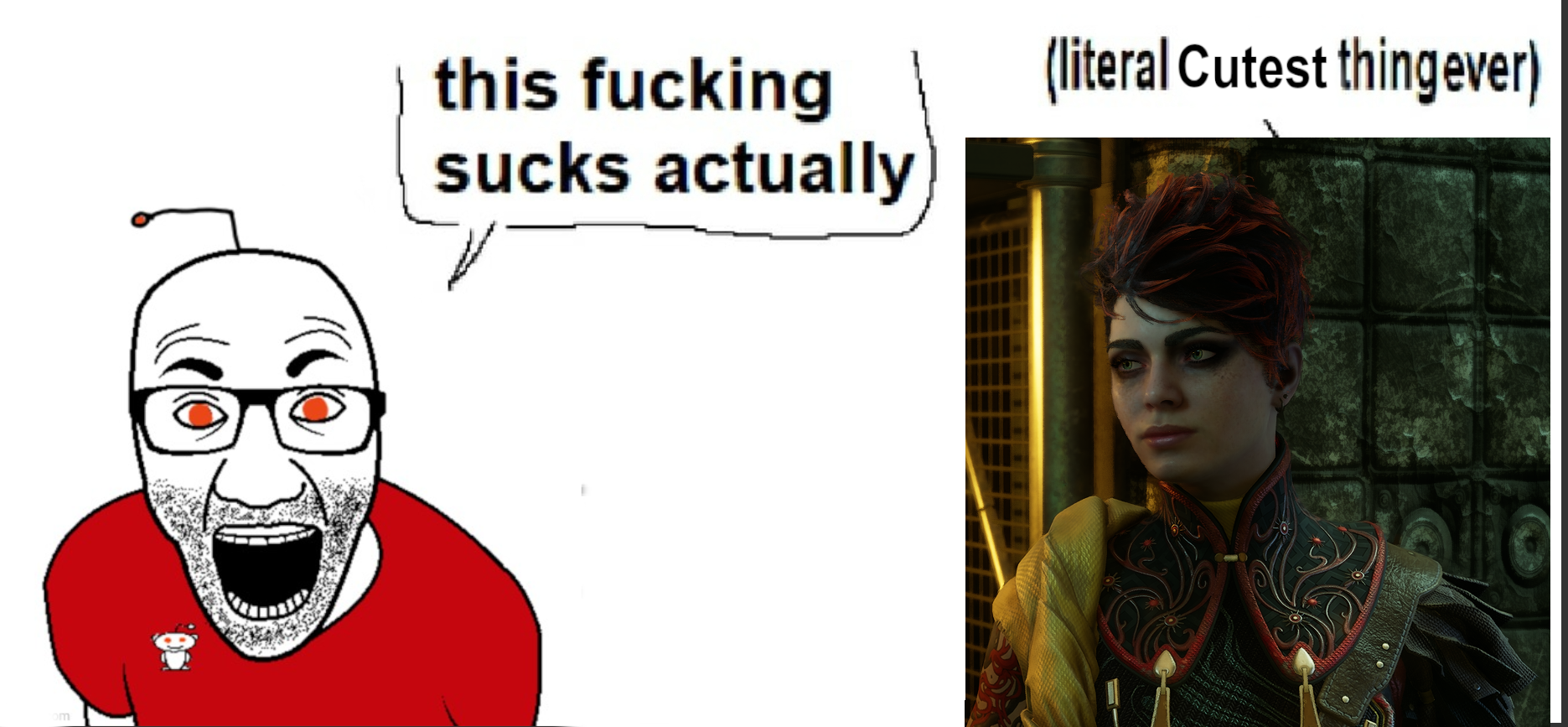 I find it incredibly funny that the brief wave of outer worlds 2 redditors viscerally hate this teh assassin of d00m tumblr throwback girl when she's the only character obsidian wrote with a reason to be so le quirky. In any other game this would be insufferable, but on the curve of this writing an extended "lol so random, boy I sure do love killing" schtick is a breath of fresh air in a game that is 70% girlboss killers they demand you take seriously.