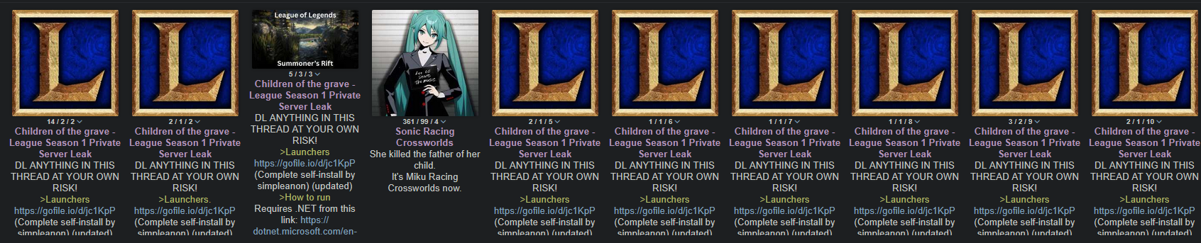 This classic League dream lives and dies by the retarded anons in this thread autistic enough to band together and contribute.