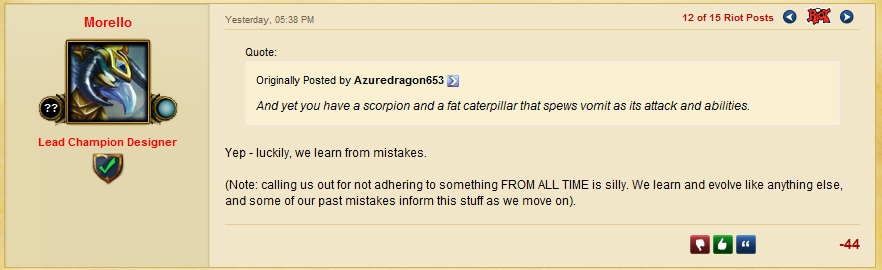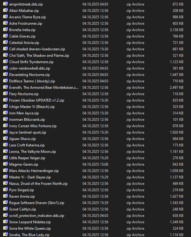 https://archive.org/details/league-of-legends-legacy-patch-system-conversions) contains snapshots of most extant builds of the early years of the game, data which is necessary to make use of if users may be interested in removed items or other content that was changed or taken away by 1.0,0.126. Vice versa, anything up to 1.0.0.150 would be nice to have as well for the rest of Season 2's data. If any anons could take the time to extract and upload game versions, it'd help immensely.