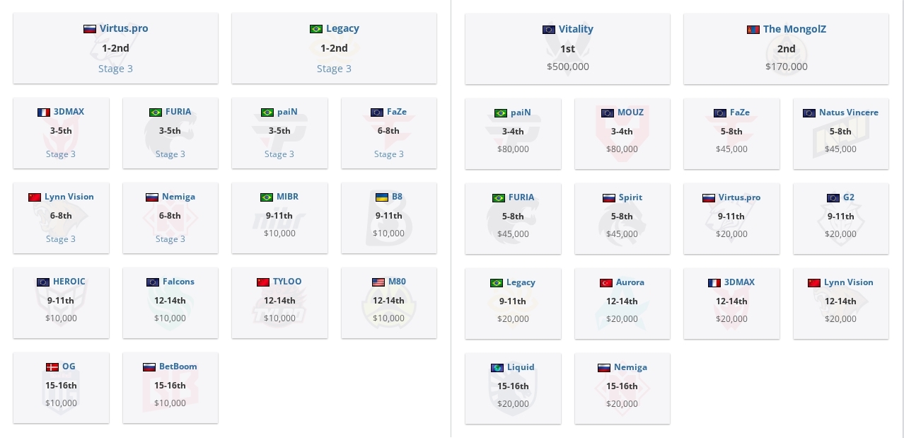 They have a 3-1 record in Stage 1 so they should at least get a better matchup in Stage 2 compared to Furia who have a worse record but got an easier matchup (just some random French and Ukrainian teams)