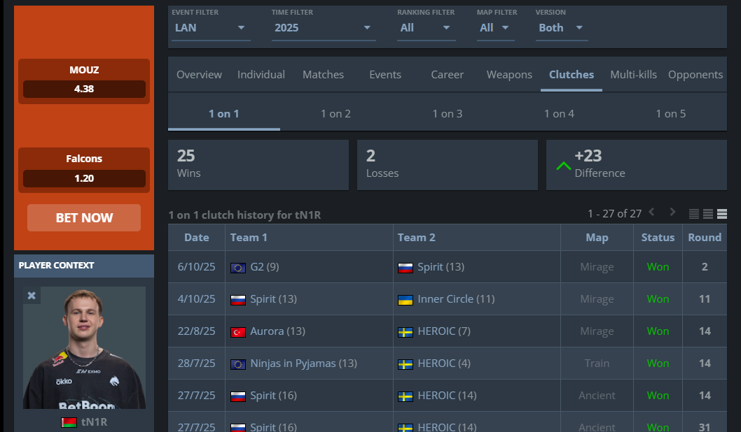 >25-2 in 1v1 on lan this year