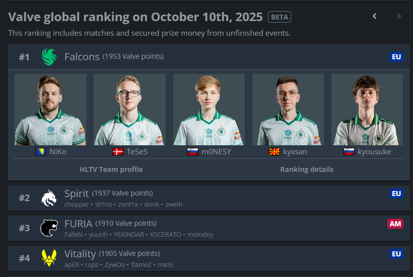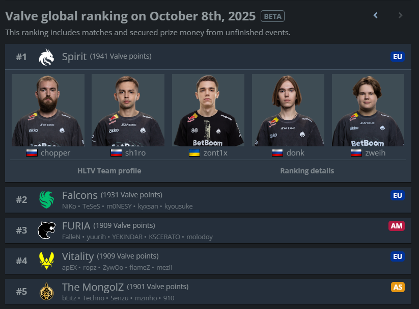 >VP is the highest rated CIS team after Spirit