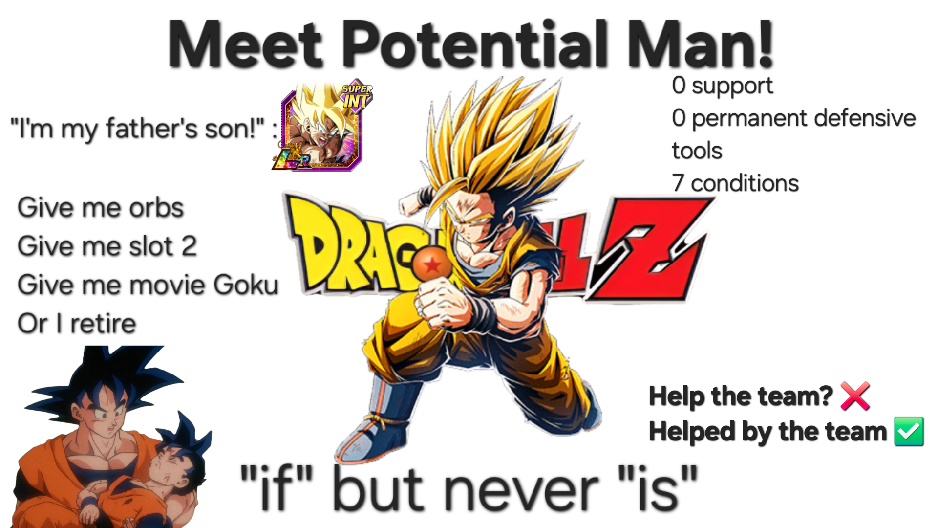 >ss3 gotenks can't get his full damage reduction if you don't run another ss3 gotenks