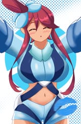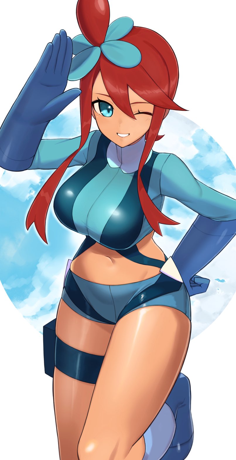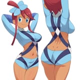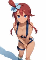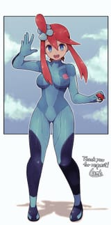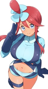 Her design really gets me. It's the perfect blend of sexy but just enough that it's cute too; her peppy and energetic personality is very good and what drives me towards her. She'd be a fun trainer to be around. I remember when I first saw her and I was all over her. Gen 5 had some amazing girls. As for fantasies, I had some nice thoughts of Skyla undressing herself the moment she started talking about having some fun. I always like that phrasing. Her gym in BW2 always gets me too in wanting to fuck her in that gym with all the turbulences, wind and the shelters.