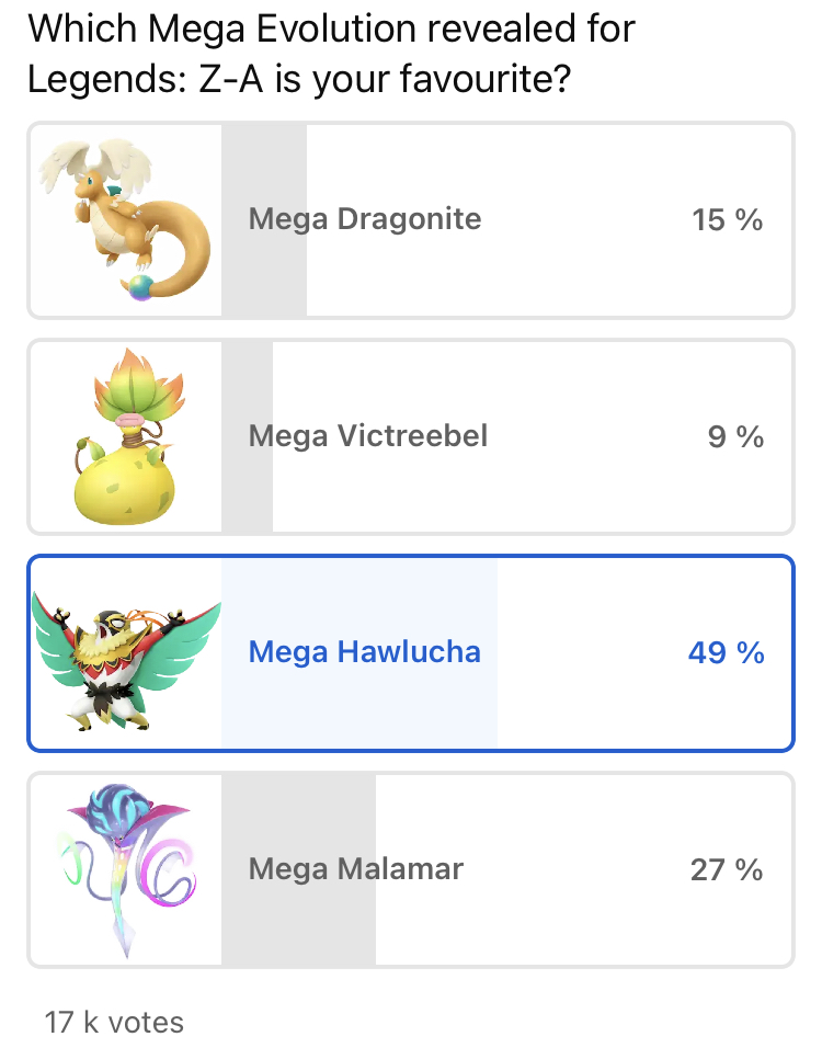 and clearly this poll shows that Dragonite: the mega isn't the contrarian pick, Mega Victreebel is, if anything
