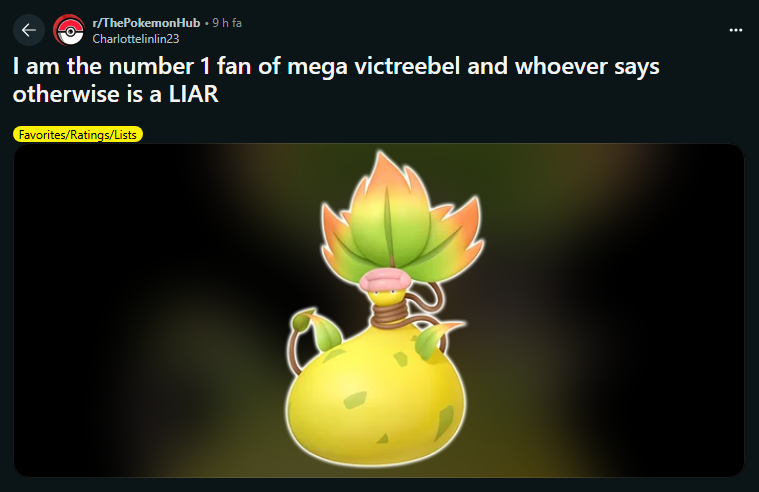>Everyone was parading Mega Victreebel for being silly chungus boi when it was brand new >Instantly becomes forgotten the moment a new mega was revealed and it was actually cool looking for once