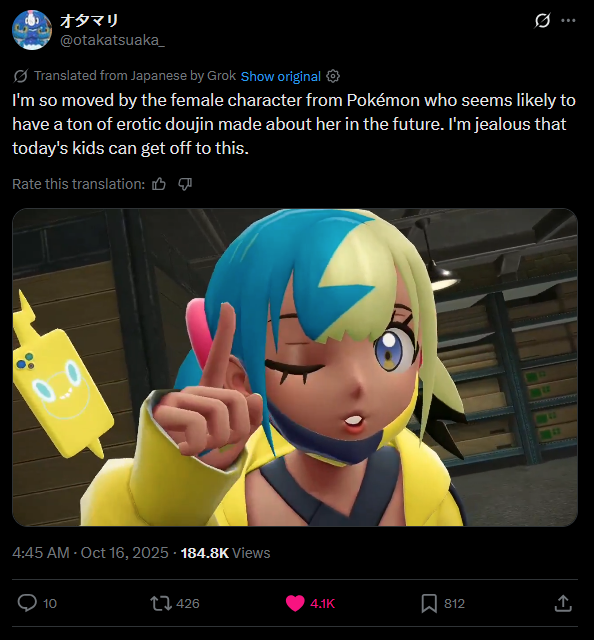 Lmfao, you wish Masuda. I am not buying a switch pokemon game over some anime girl even if I end up cooming liters to her.
