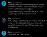 Scott reminds me of DarkUnderlord at rpgcodex. Stopped caring about the site, let himself be bossed around, put malicious people in charge such as (((Infinitron))) or Taluntain, bought the narrative of that tranny Theodora wholesale during some drama, banned the chuds and the community split over that, leading to the creation of rpghq. It's amazing how the same story repeats over and over in nerd communities.
