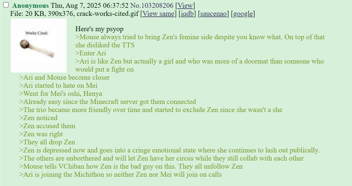 The anon made it sound more serious that it actually is. She even said she loves Zen, and she's sort of right about Zen being a troll although I do remember her antics making the Rust arc more enjoyable than just survivalslop