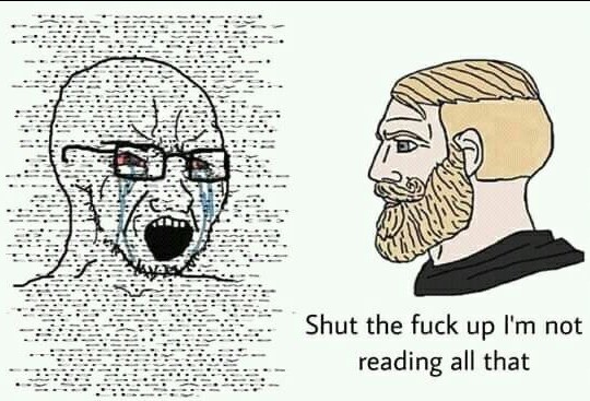See at least this level of shitposting can be a bit funny. Why can't the other fag try like this?
