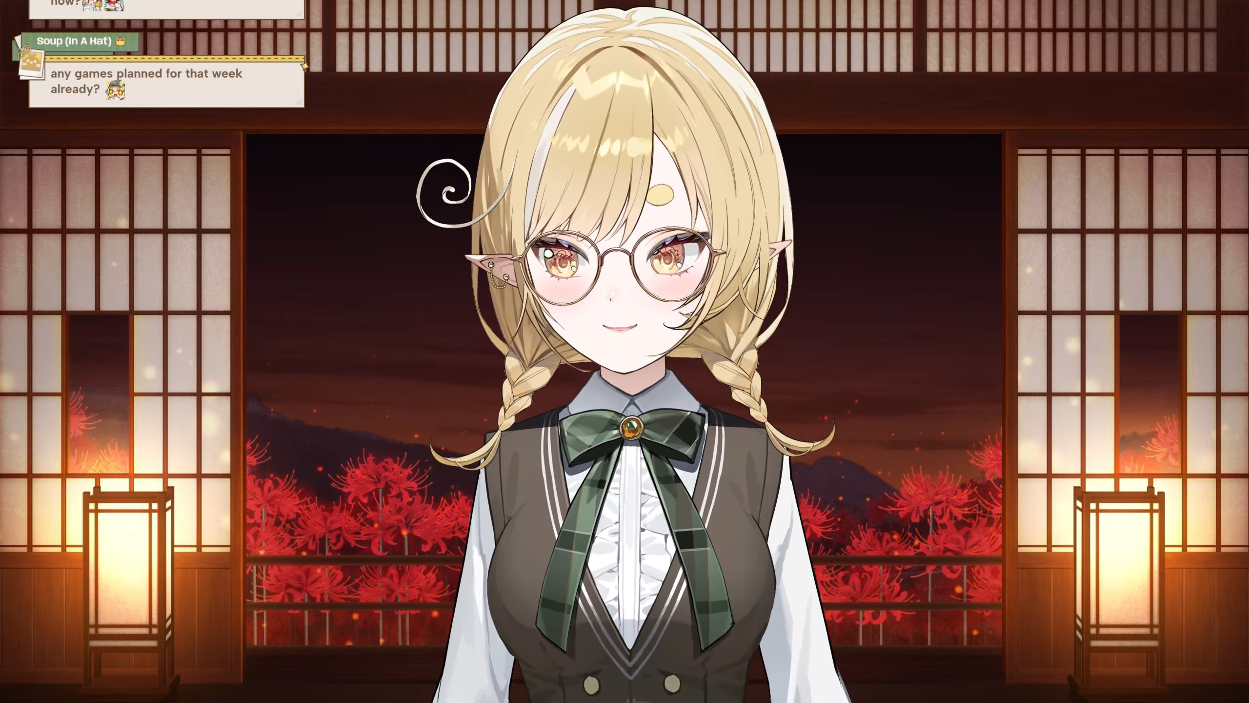 Who are /we/ watching today? Kanna is starting in a minute. Toffee hag karaoke later.