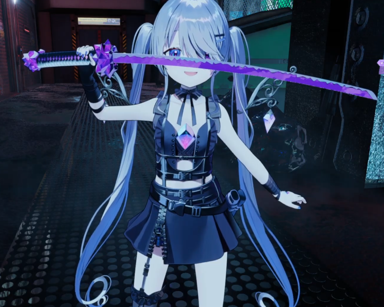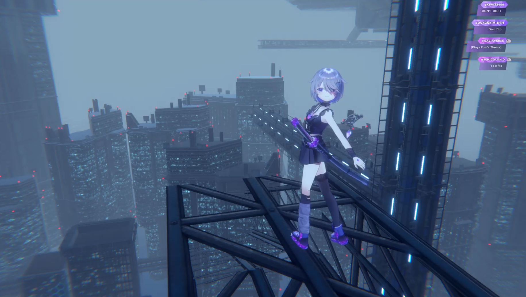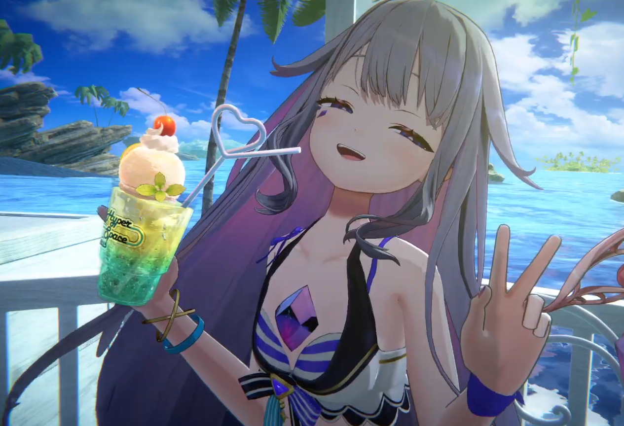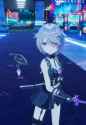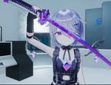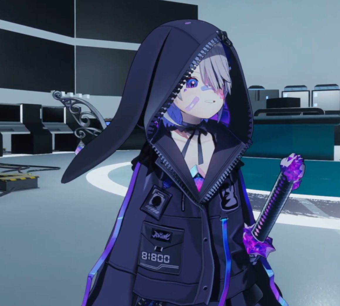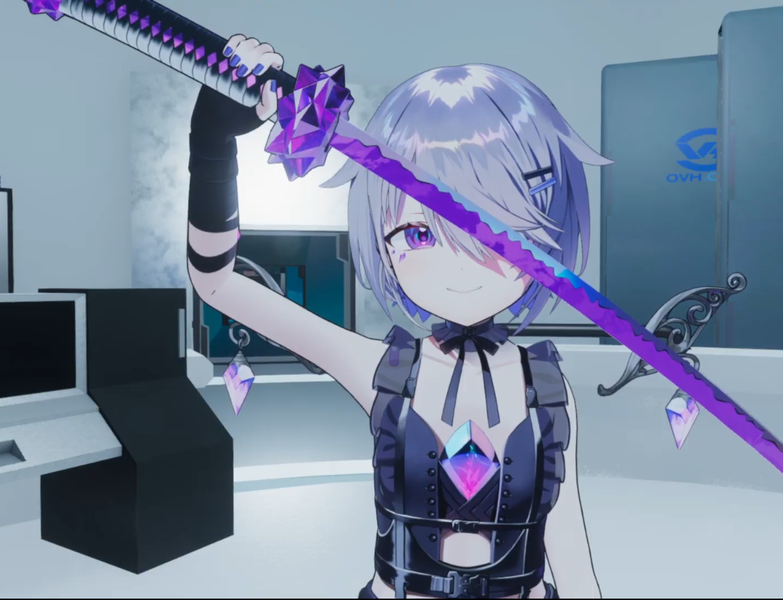 It looks like she's pole dancing with green vector-chan...
