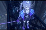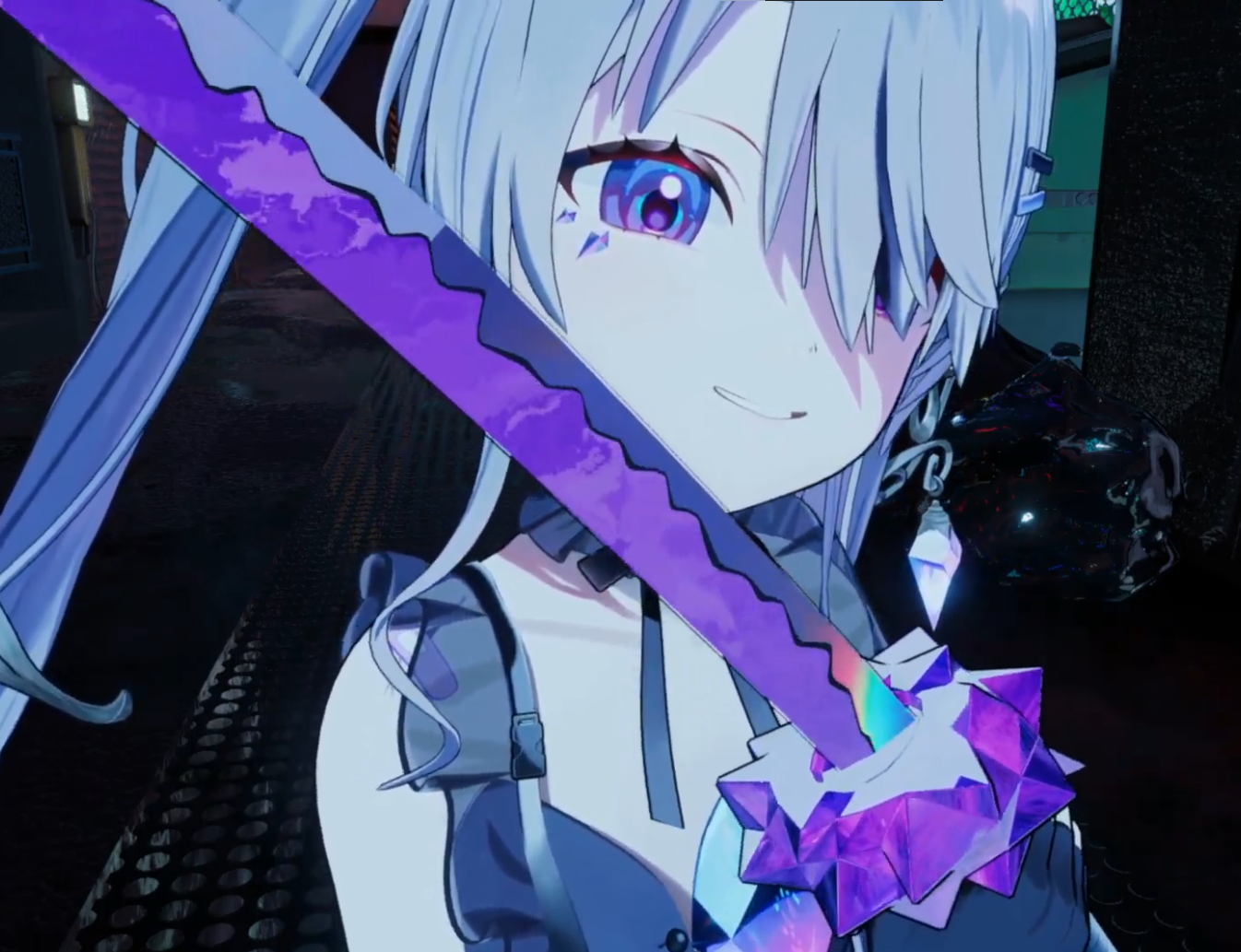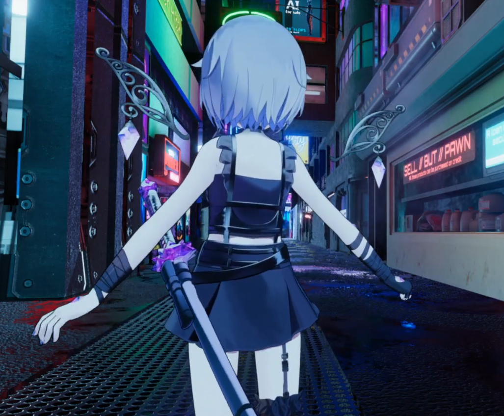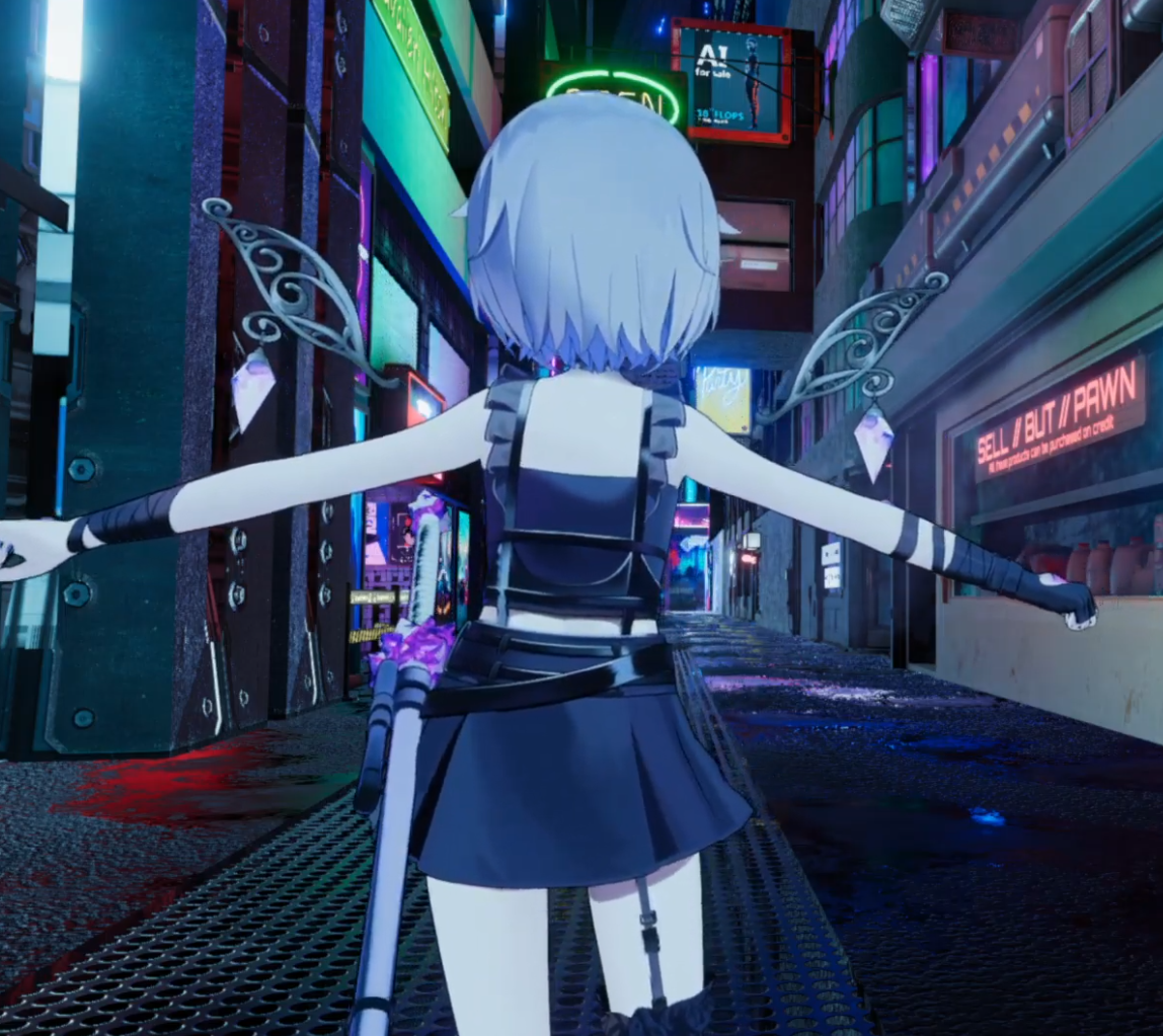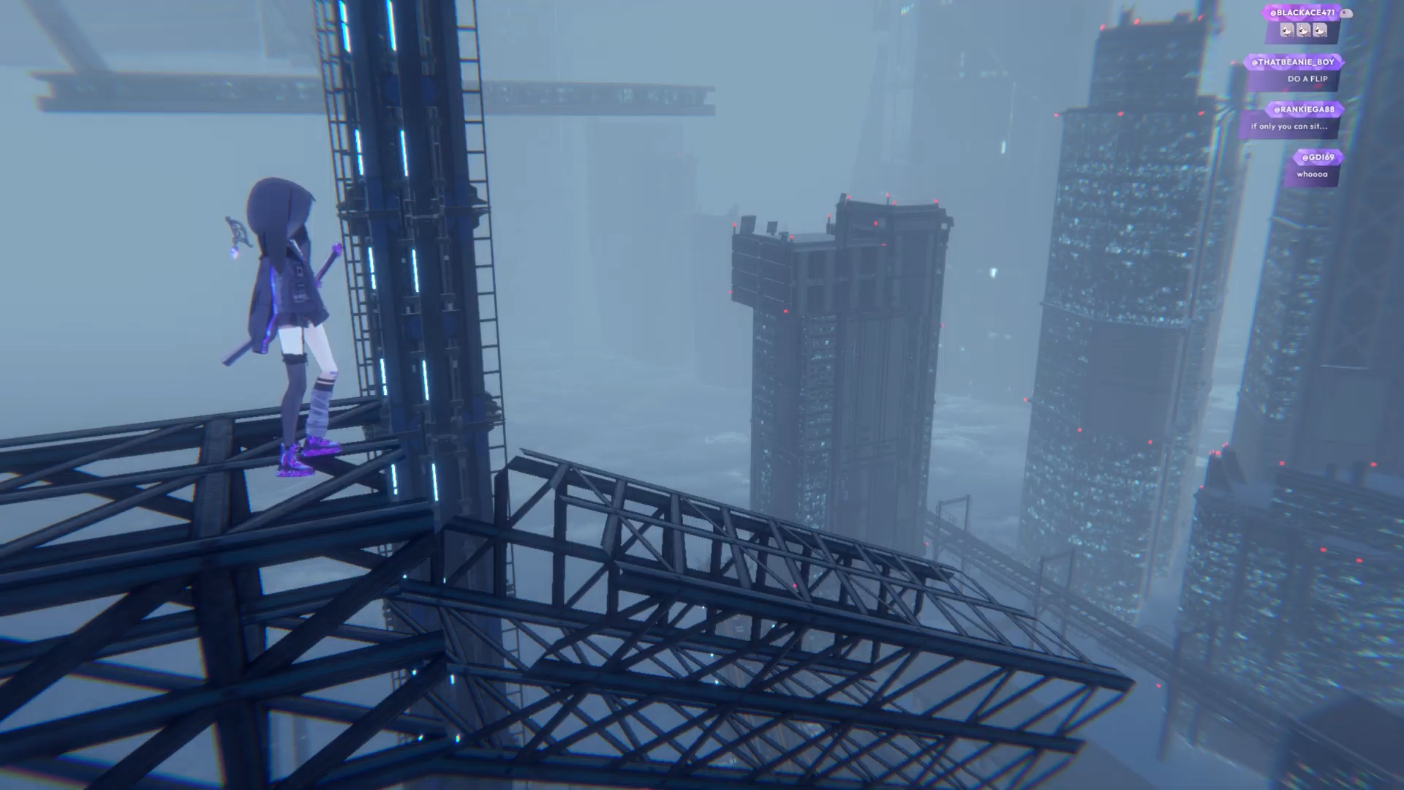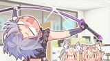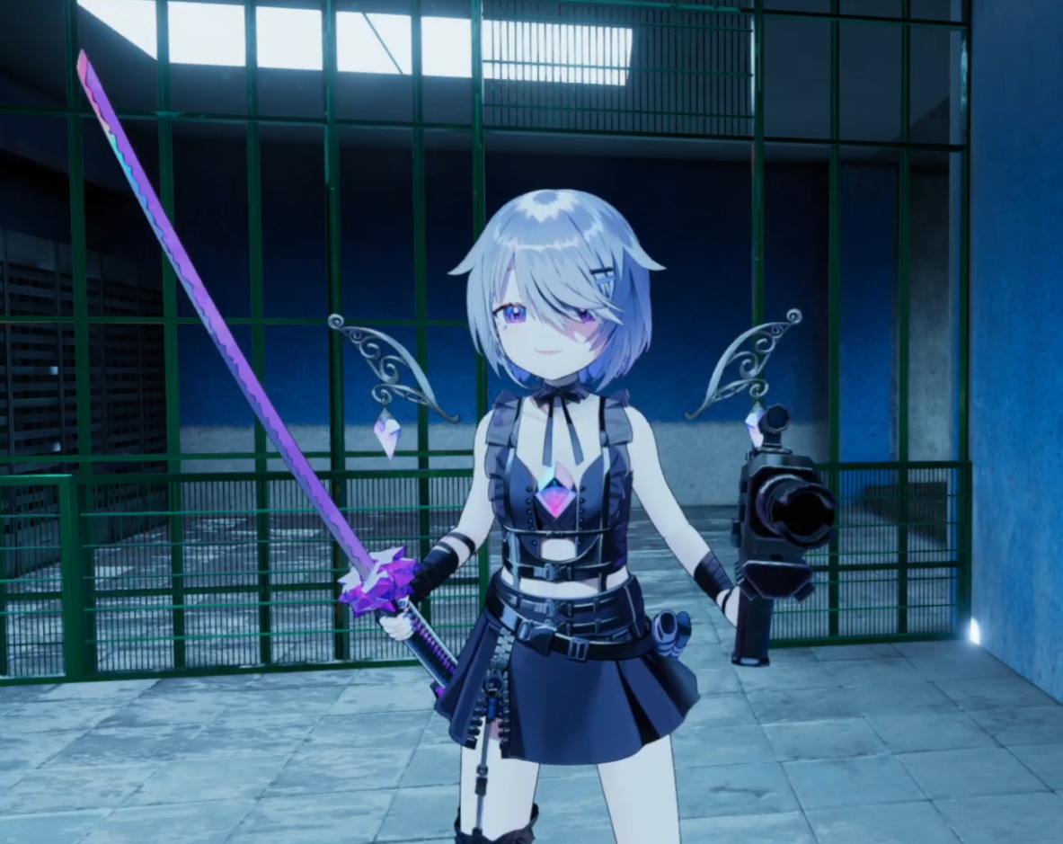 It looks like she's pole dancing with green vector-chan...