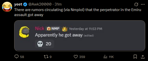 >... according to sources emiru was attacked by an unknown assailant who has gotten away