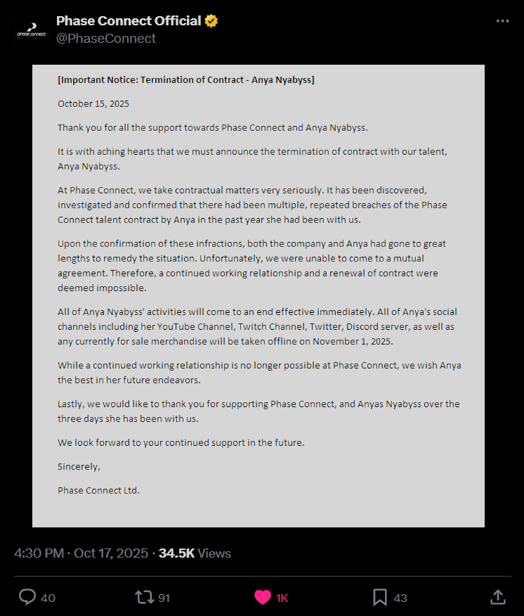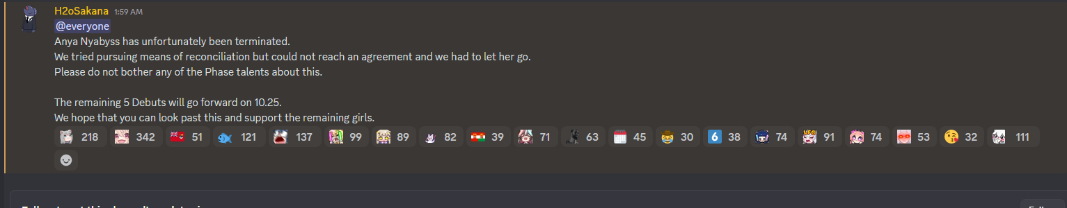 next week debut goes smoothly, the new girls are great but anya doesn't show up. No one mentions her absence. After debut is done a small note on x saying she was terminated.