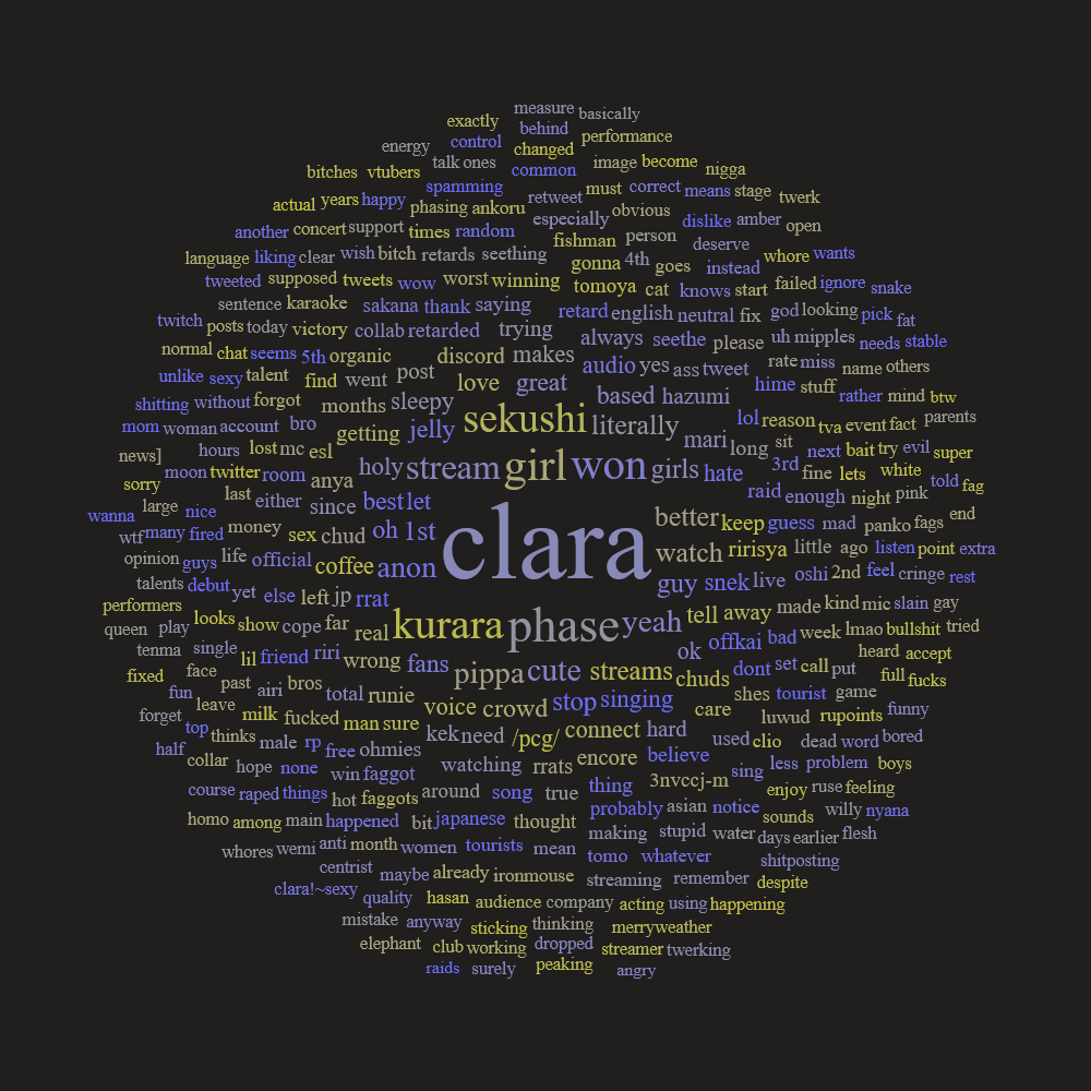 I don't actually want anything bad happening to Clara not because I'm a fan of her, I'm just worried it will spill over to the other girls. Arguably some of them have worst yabs tied to their PL and I'd prefer that they keep streaming